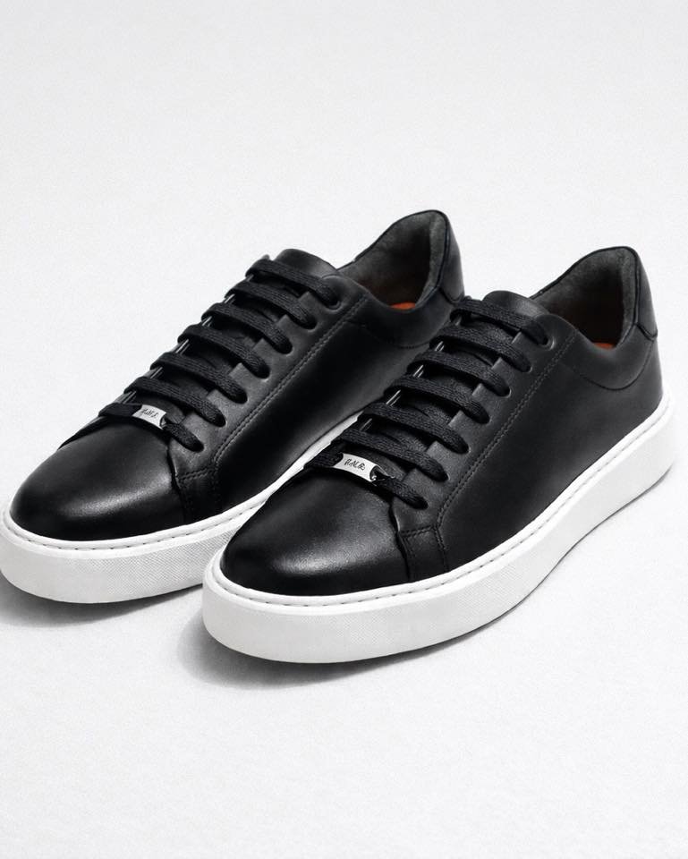 Atlete minimaliste për meshkuj, të punuara nga material premium i butë me përfundim të pastër dhe elegant. Dizajni modern në ngjyrë të zezë klasike, i kombinuar me tabane të bardhë kontrast, i bën këto atlete ideale si për veshje të përditshme ashtu edhe për kombinime smart-casual.