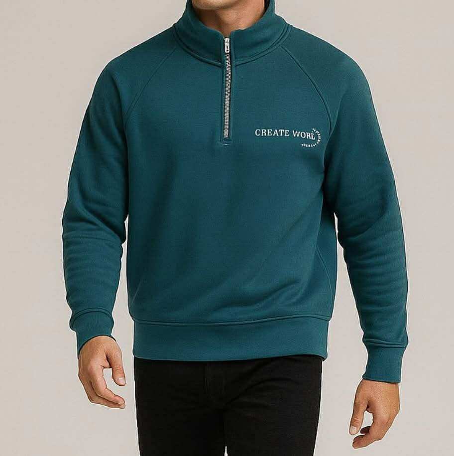Be the first to review “Bluzë gjysmë-zip blu “Create World””