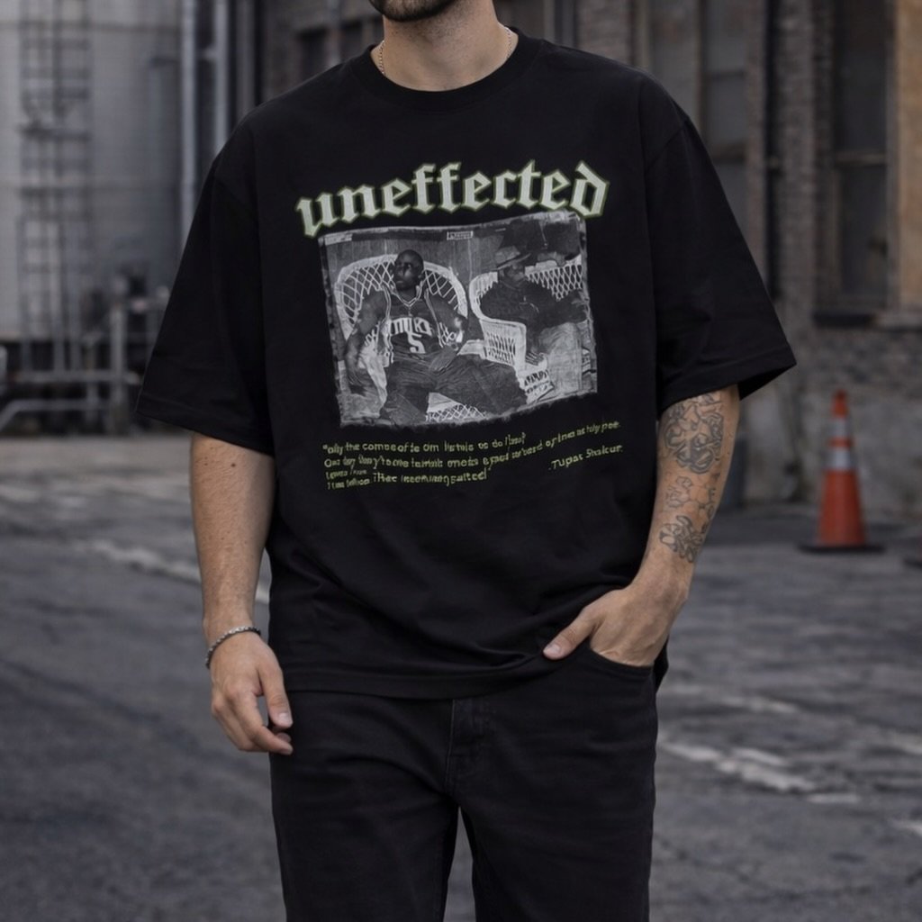 Bluzë oversize me dizajn grafik “Unaffected”, e krijuar për një stil të fortë dhe të pavarur. Printi me elemente street dhe vibe urban i jep një karakter unik, perfekt për ata që duan të dallohen pa shumë përpjekje.