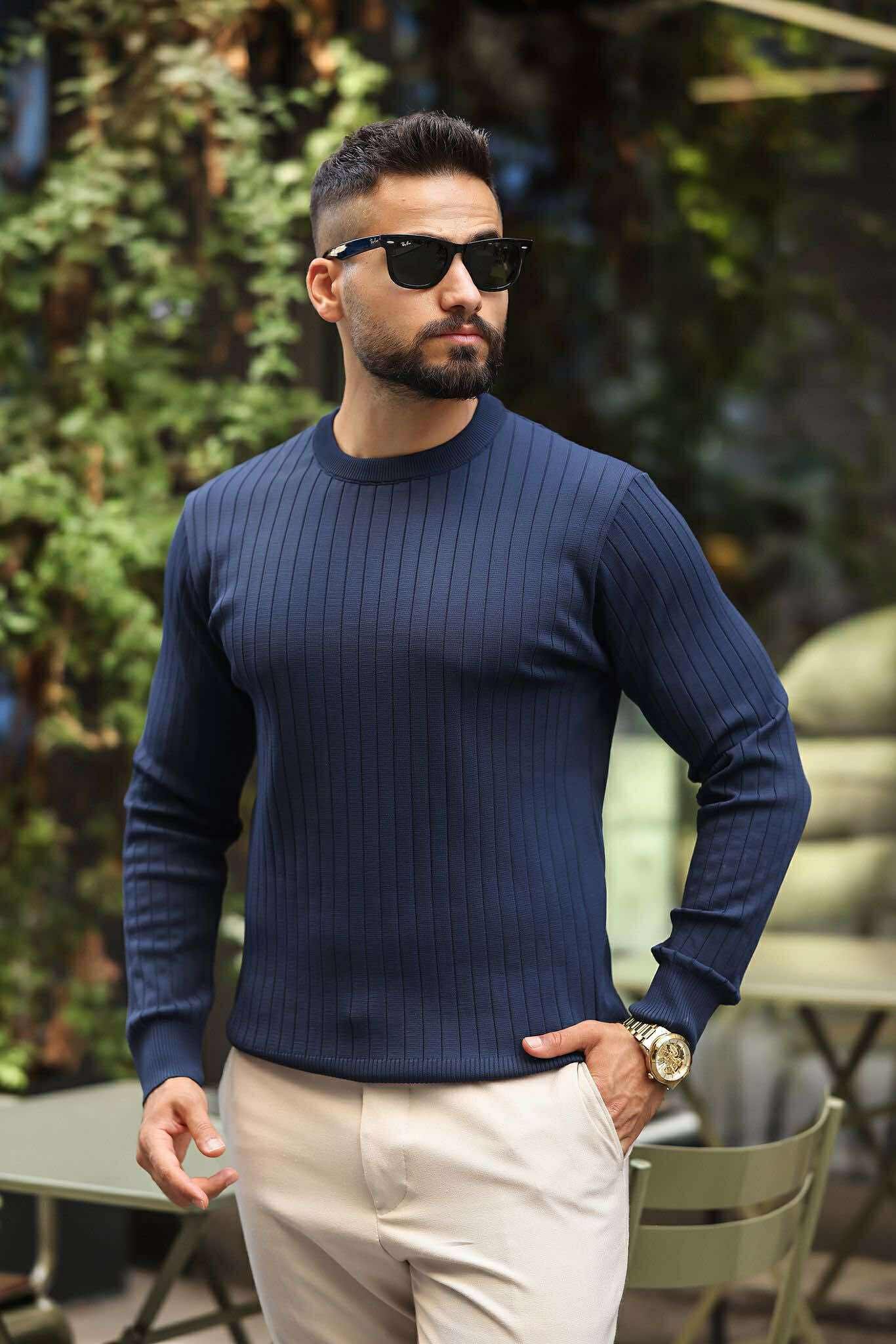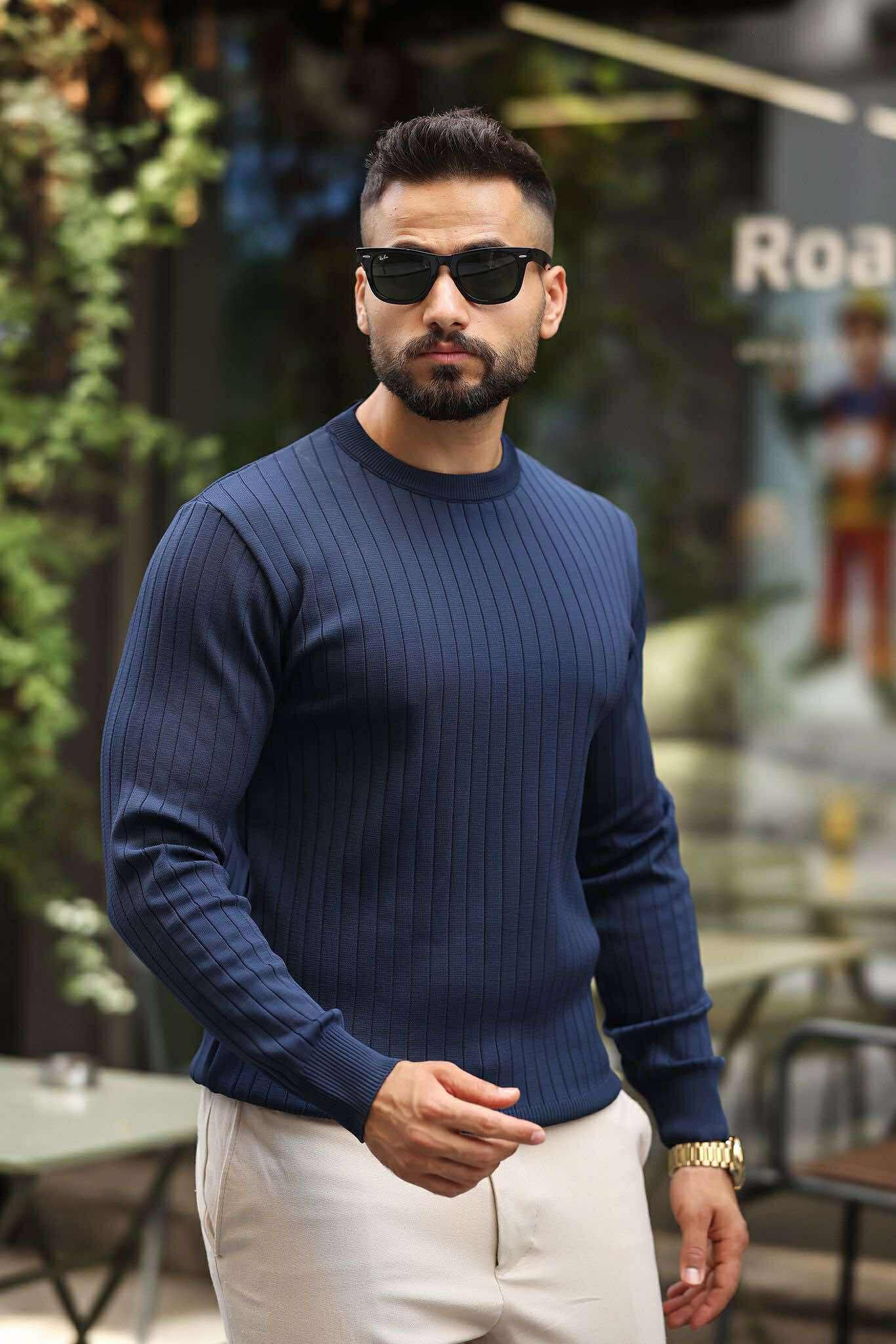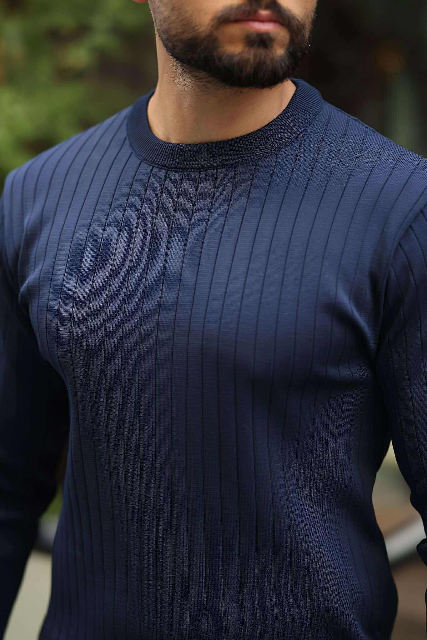 Kjo bluzë slimfit në ngjyrë blu navy është një zgjedhje ideale për një pamje moderne dhe elegante. Vijat vertikale krijojnë një efekt vizual që zgjat siluetën, ndërsa materiali cilësor ofron komoditet dhe freski gjatë gjithë ditës. Dizajni minimalist, por me prekje premium, e bën këtë bluzë të kombinohet lehtë me pantallona të çelëta ose të errëta, duke shtuar stil në çdo dalje.