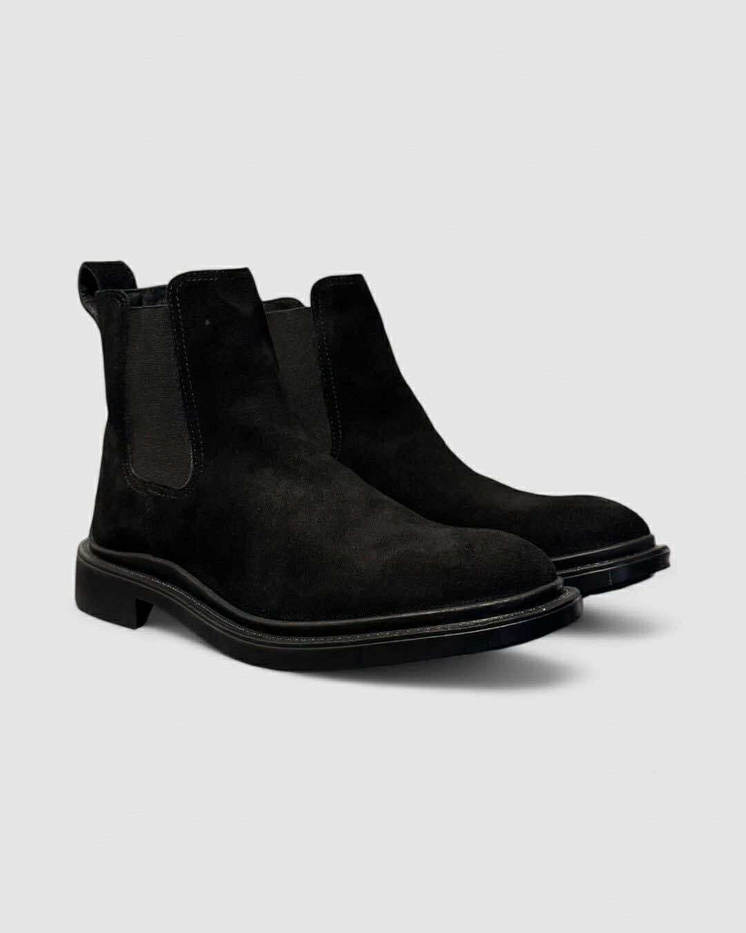 Chelsea Boots Urban Shadow sjellin kombinimin perfekt të stilit minimal dhe komoditetit modern. Të punuara nga suede (lëkurë me push) në ngjyrë të zezë të thellë, këto boots japin një pamje më të butë dhe luksoze se lëkura klasike, ideale për outfit-e urbane dhe smart–casual.
