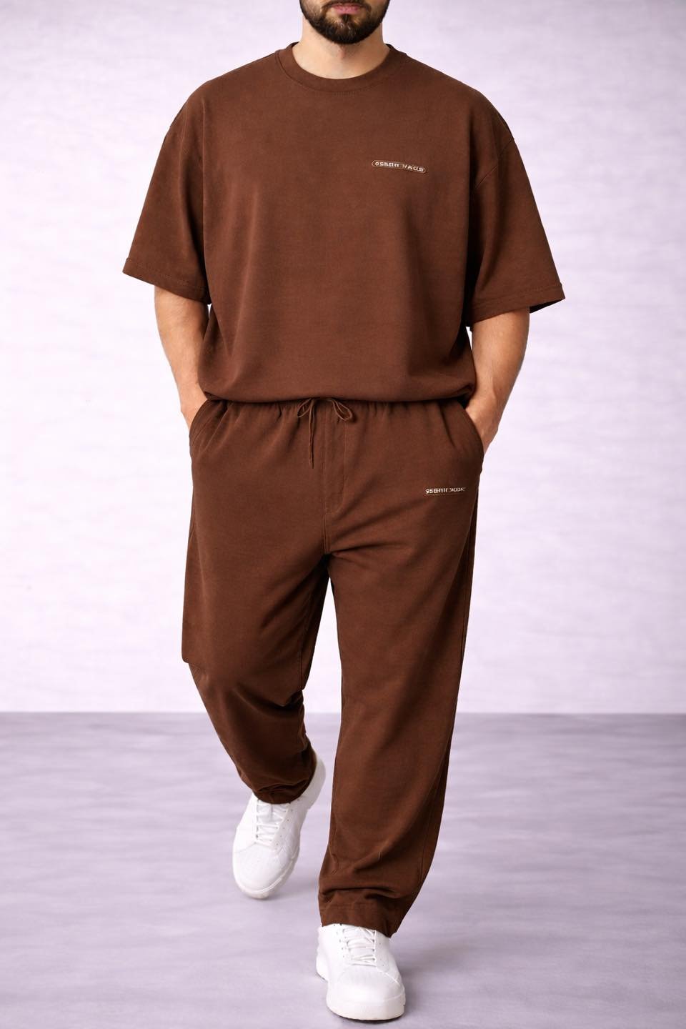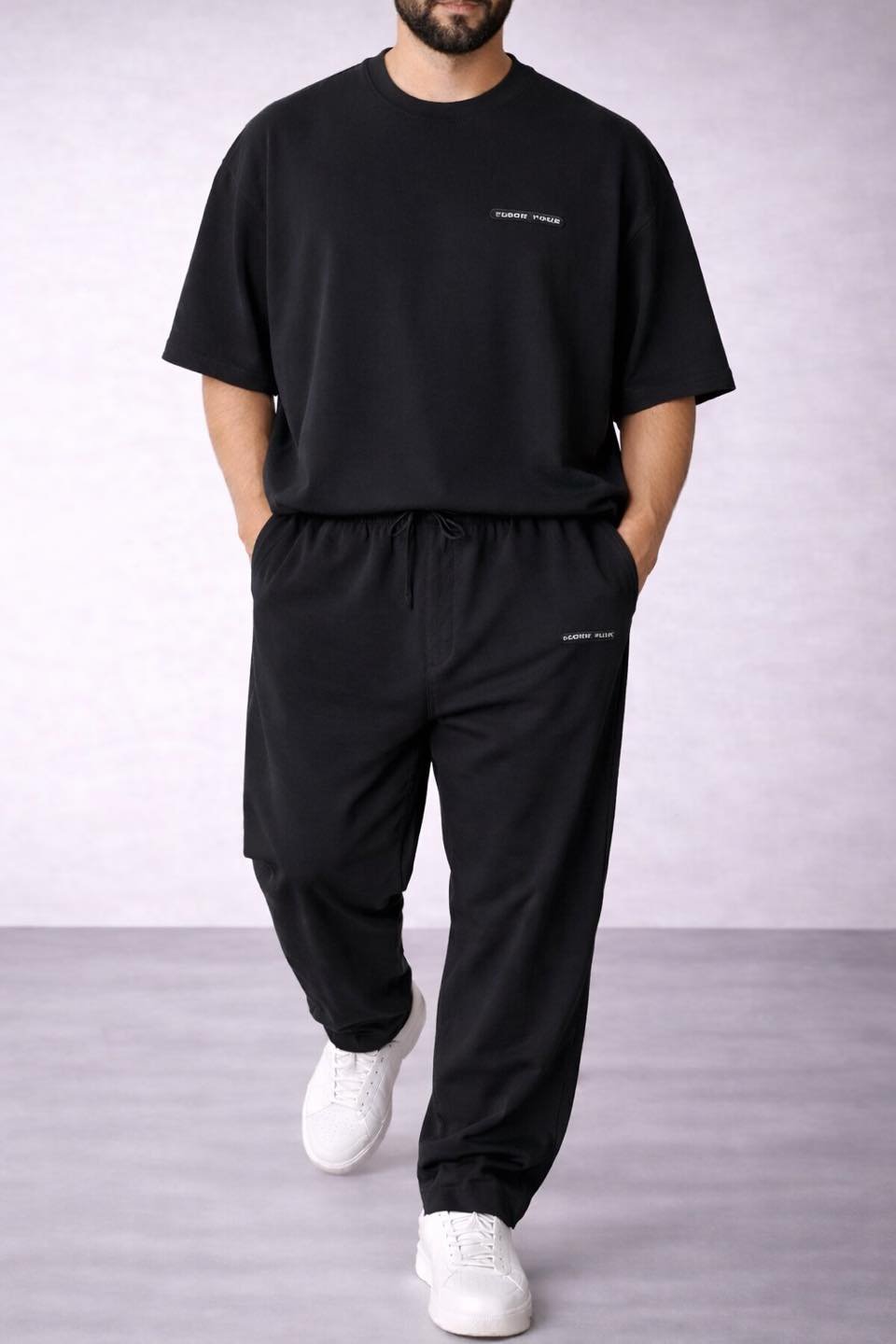 Essential Comfort Set është një kombinim modern dhe minimalist i krijuar për komoditet maksimal dhe stil të pastër urban. Ky set përbëhet nga një t-shirt oversize dhe pantallona të rehatshme me bel elastik, duke krijuar një pamje të relaksuar dhe elegante në të njëjtën kohë.