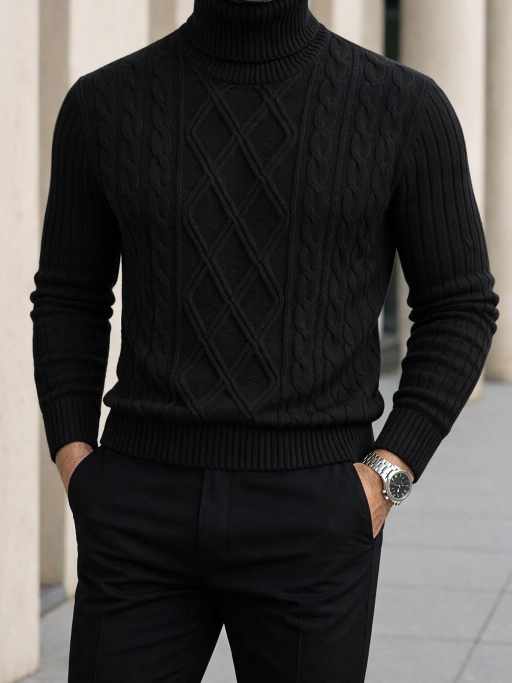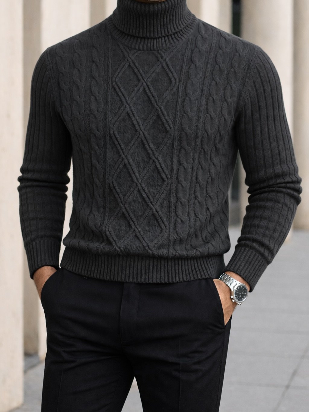 Golf premium për meshkuj me punim të trashë cable knit, i dizajnuar për stil urban–elegant dhe rehati maksimale. Materiali cilësor ofron ndjesi të butë dhe ngrohtësi ideale për ditët e ftohta. Prerja moderne siguron përshtatje të rregullt dhe pamje elegante, duke u kombinuar lehtësisht si me veshje casual ashtu edhe me ato formale. Zgjedhje perfekte për përdorim të përditshëm dhe raste speciale.
