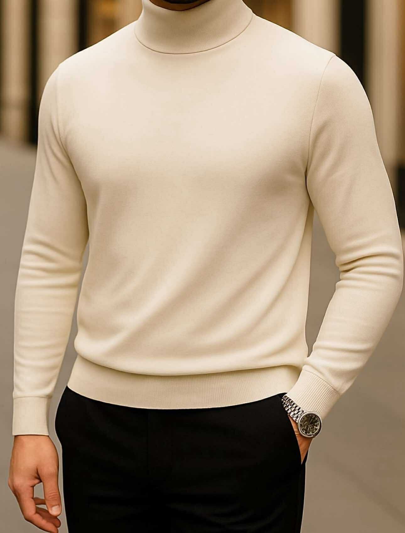 Golf luksoz në ngjyrë “cream beige”, i dizajnuar për ata që preferojnë elegancën minimale dhe komoditetin maksimal. Materiali premium me strukturë të butë dhe elastike ofron përshtatje perfekte në trup dhe ndjesi të këndshme gjatë gjithë ditës. Ngjyra neutrale e bën të lehtë për kombinime me çdo veshje – nga look-et urbane deri te ato klasike me pallto ose xhupa lëkure.