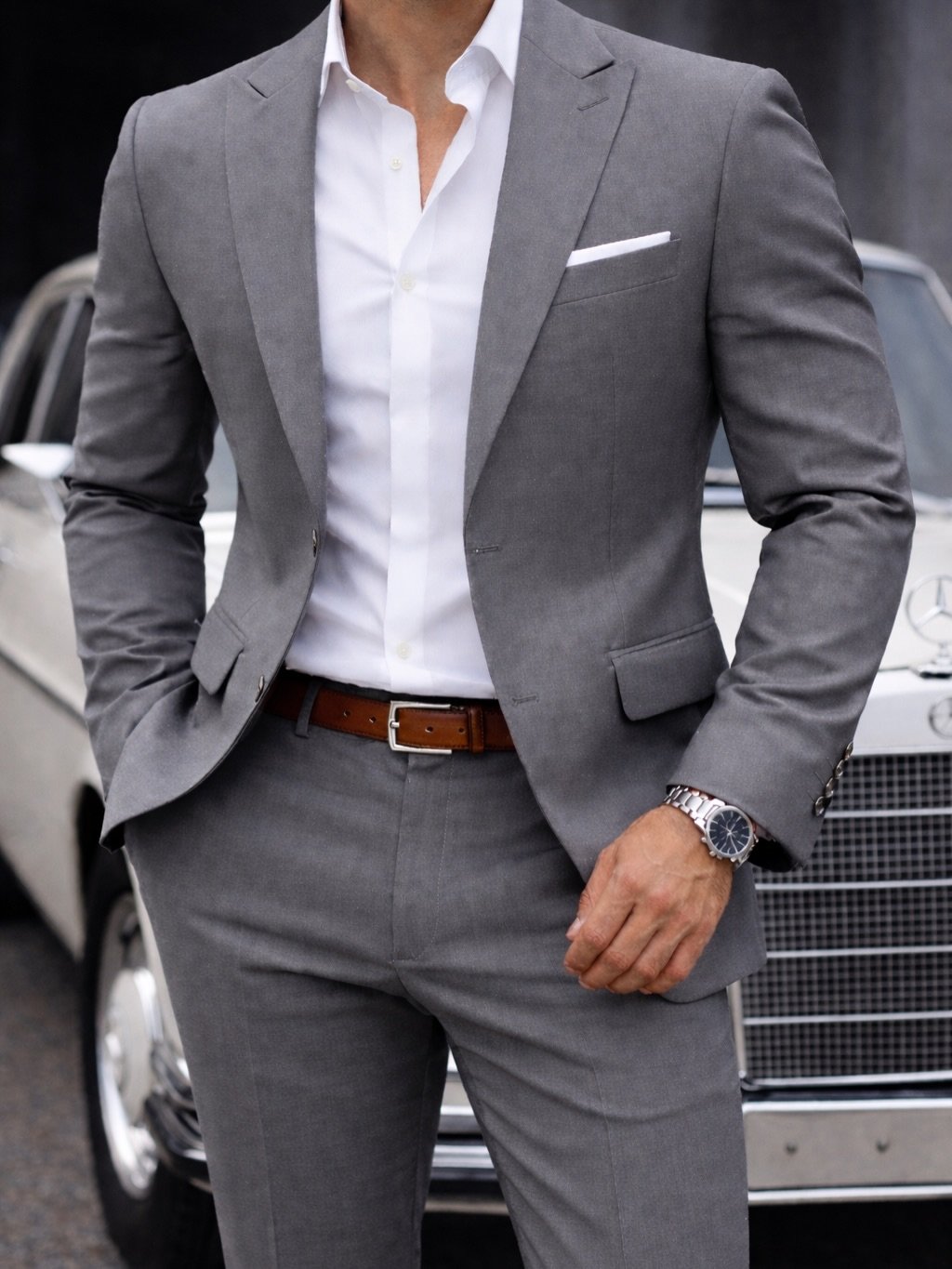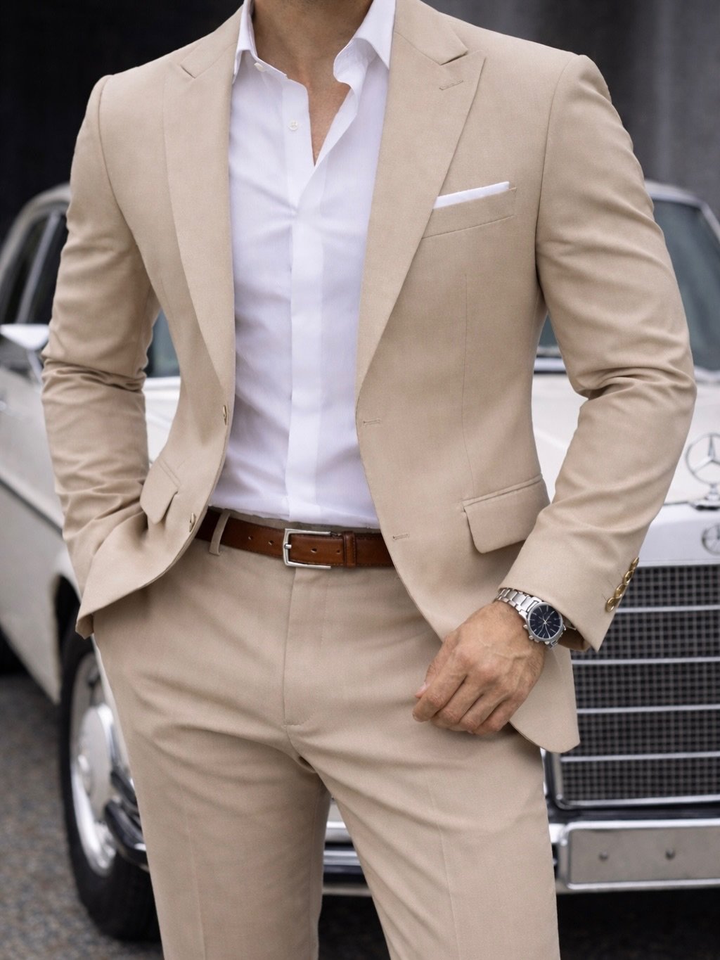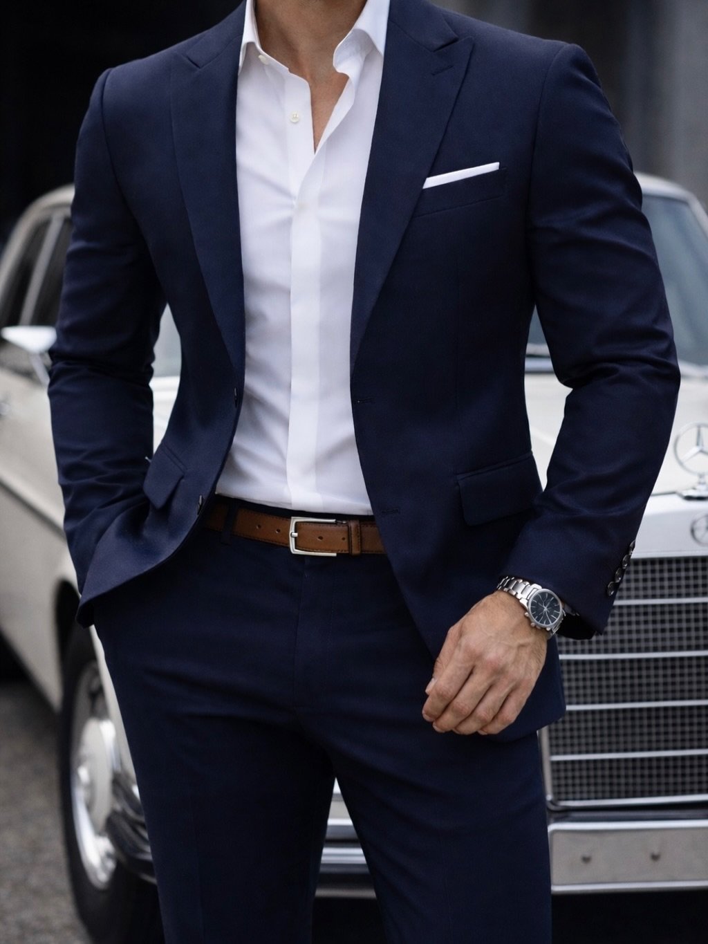 Këmisha e bardhë e kombinuar krijon një bazë të pastër dhe të sofistikuar, ndërsa detajet si rripi klasik dhe ora elegante kompletojnë një pamje të kuruar deri në detaj. Këto kostume janë zgjedhja ideale për takime biznesi, evente formale dhe raste speciale, duke garantuar prezencë të fortë dhe stil të dallueshëm në çdo ambient.
