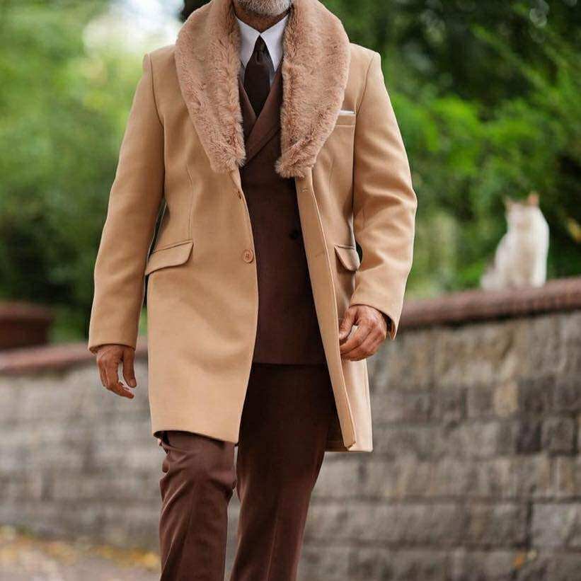 Pallto Camel me Jakë Pelushi – Elegancë Klasike & Luksoze