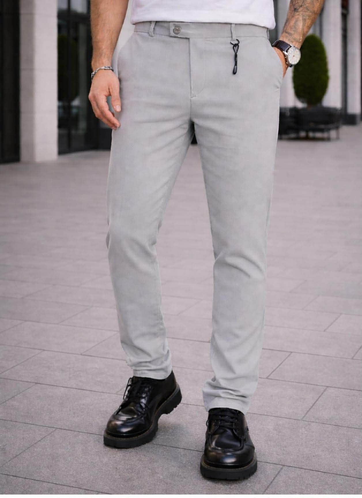 Pantallona chino premium në ngjyrë gri e hapët, perfekte për një stil modern, minimalist dhe shumë elegant. Materiali cilësor me elasticitet të lehtë ofron rehati maksimale dhe lëvizje të lirë gjatë gjithë ditës. Prerja slim fit e bën pamjen më të pastër dhe elegante, ndërsa detaji i xhepit me zinxhir i jep një prekje “urban luxury”. Kombinohen shumë lehtë me t-shirt, këmishë, golf apo xhaketë – ideale si për përditshmëri ashtu edhe për dalje.