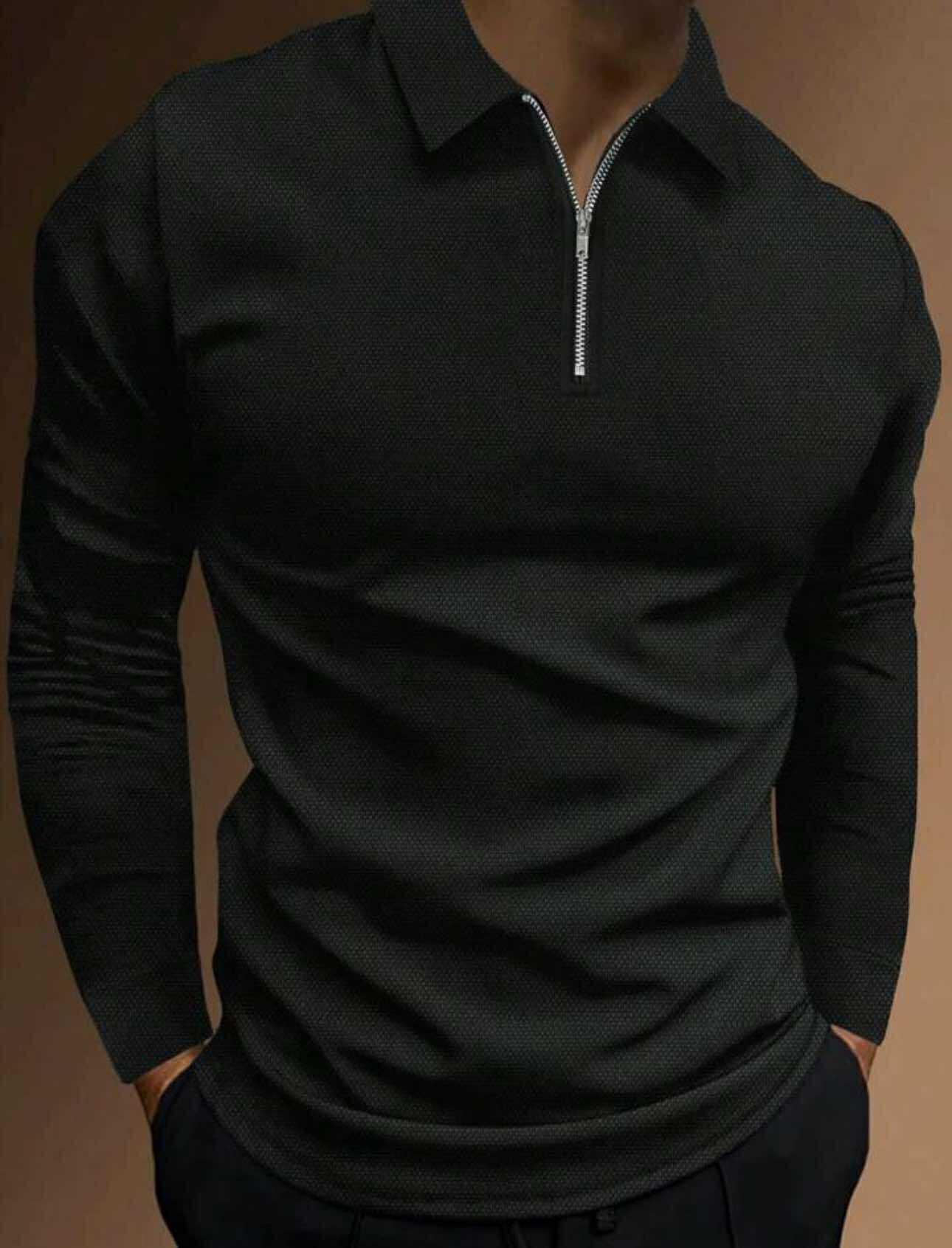 Kjo bluzë polo me zinxhir gjysmë-zip në ngjyrë të zezë sjell një pamje elegante dhe moderne që përshtatet lehtësisht si për ditë pune, ashtu edhe për dalje në mbrëmje. Materiali me teksturë të sofistikuar e bën të veçantë dhe premium, ndërsa kontrasti i zinxhirit shton një detaj minimalist dhe urban. Prerja slim-fit siguron qëndrueshmëri dhe stil, duke e bërë këtë bluzë një zgjedhje perfekte për çdo garderobë.