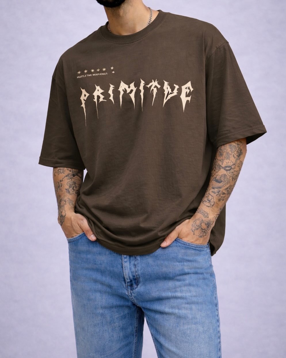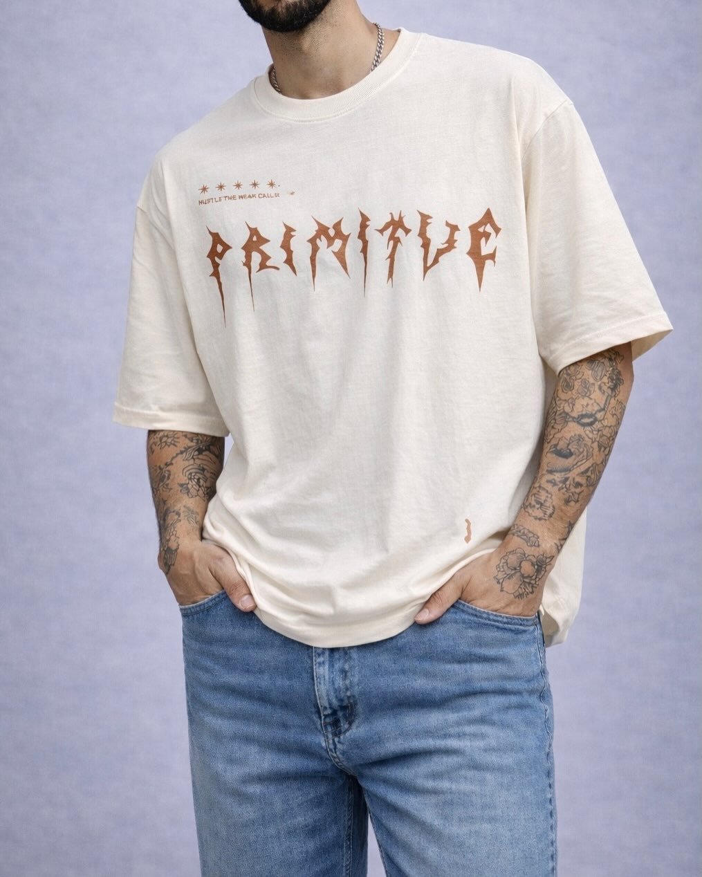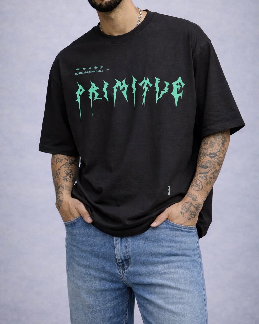 T-shirt oversize me dizajn grafik modern dhe tipografi të theksuar, e krijuar për stil urban me karakter të fortë. Printi unik në pjesën e përparme i jep identitet dhe e bën modelin të dallohet menjëherë.