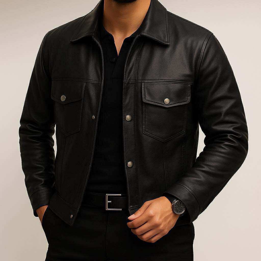 Xhaketë prej eco-lekure të zezë premium, me dizajn klasik dhe prerje të drejtë për një pamje moderne e të fuqishme.
