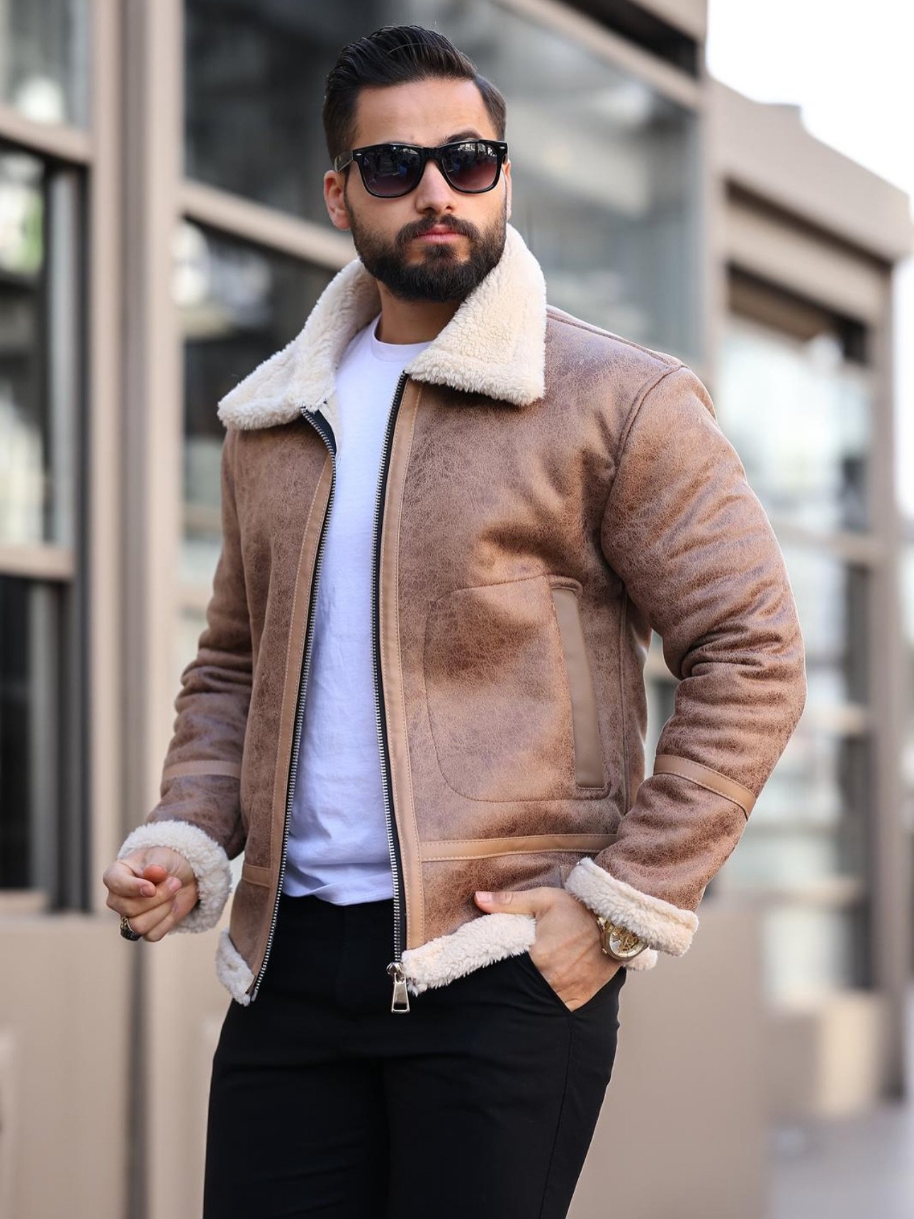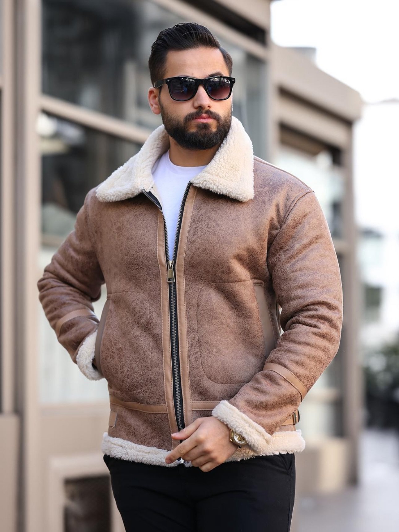 Elegancë, ngrohtësi dhe stil modern në një dizajn unik. Kjo xhaketë eco lëkure premium sjell luksin e qëndrueshëm në çdo detaj, me një nuancë kamel/bezhë që i jep pamje të rafinuar dhe të dallueshme. Jakë dhe brendësi me pelush të butë bezhë, që sigurojnë komoditet maksimal dhe ndjesi të ngrohtë gjatë ditëve të ftohta. Zinxhiri metalik dhe prerja “Urban Fit” krijojnë një siluetë elegante dhe mashkullore – perfekte për stilin street-luxury të përditshëm.