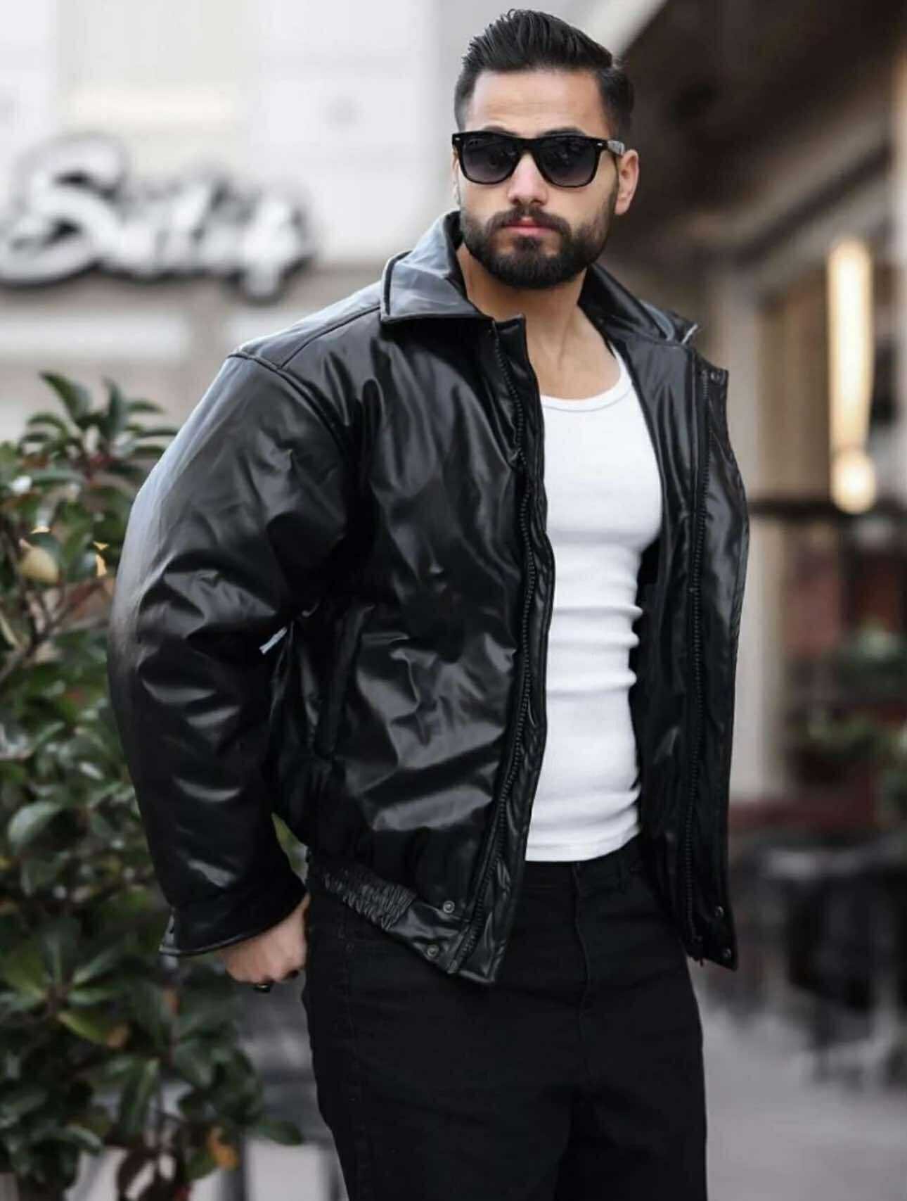 Kjo xhaketë lëkure në ngjyrë të zezë me shkëlqim është dizajnuar për ata që duan të dallohen me një stil modern dhe urban. Me një prerje klasike bomber dhe material rezistent, ajo ofron komoditet dhe pamje të fuqishme njëkohësisht. Jaka e ngritur dhe mbyllja me zinxhir e plotë i japin një pamje të sigurt dhe tërheqëse, ndërsa belja dhe mëngët elastike sigurojnë përshtatje perfekte. Mund të kombinohet lehtësisht me xhinse ose pantallona të zeza për një look të guximshëm streetwear.
