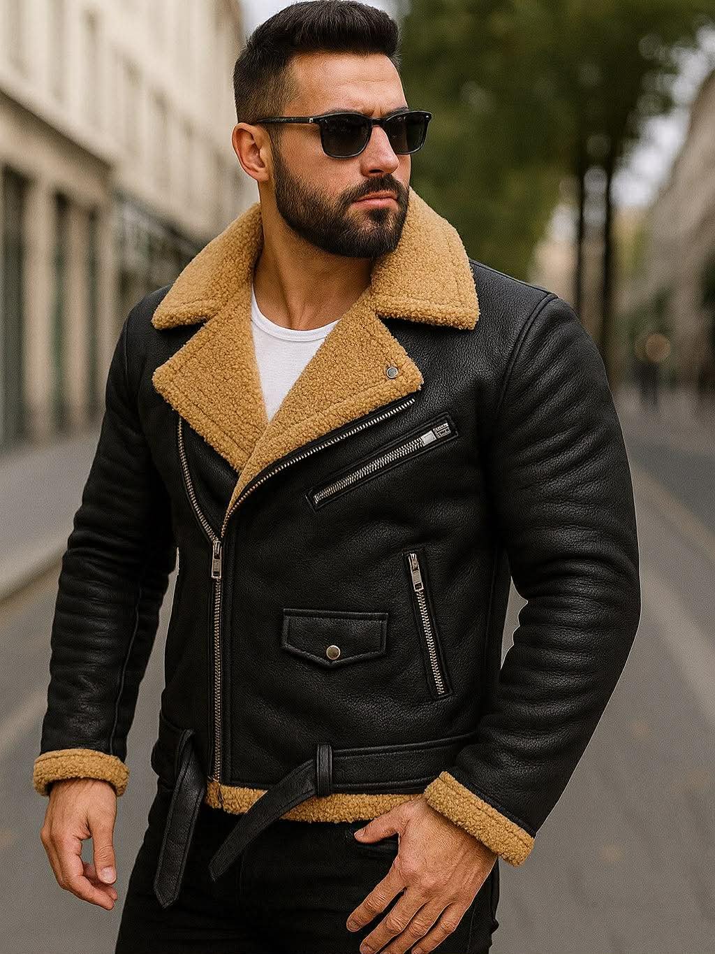 Xhup Lëkure Premium me Pelush për Meshkuj – Stil Urban & Ngrohtësi Maksimale