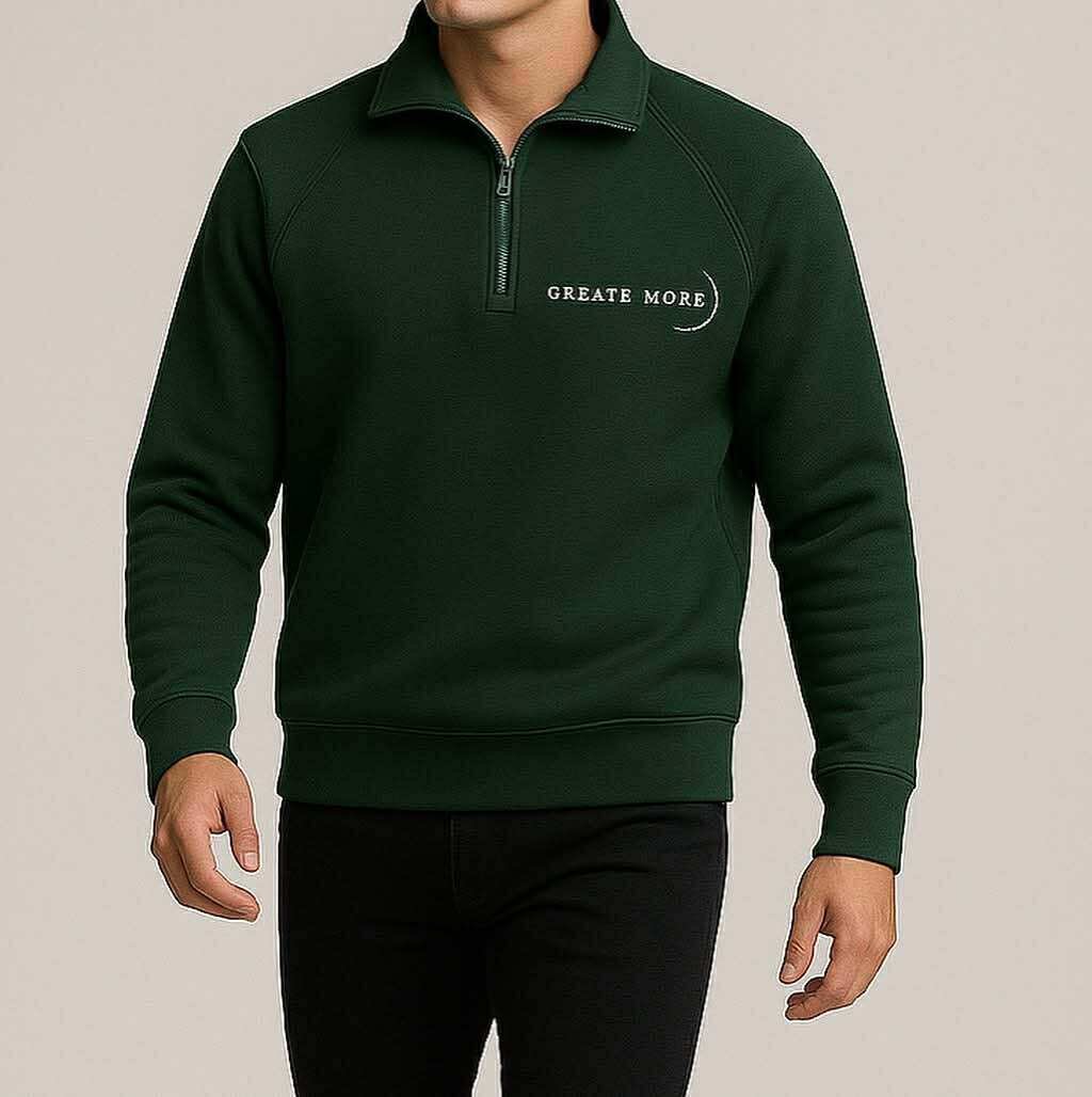 Bluzë moderne me dizajn minimal, e punuar nga material i butë dhe rezistent. Ngjyra jeshile e errët i jep pamje elegante dhe urbane, ndërsa zinxhiri i shkurtër në qafë shton funksionalitet dhe stil. Mbishkrimi “CREATE MORE” përfaqëson energjinë kreative dhe motivuese të përditshme.