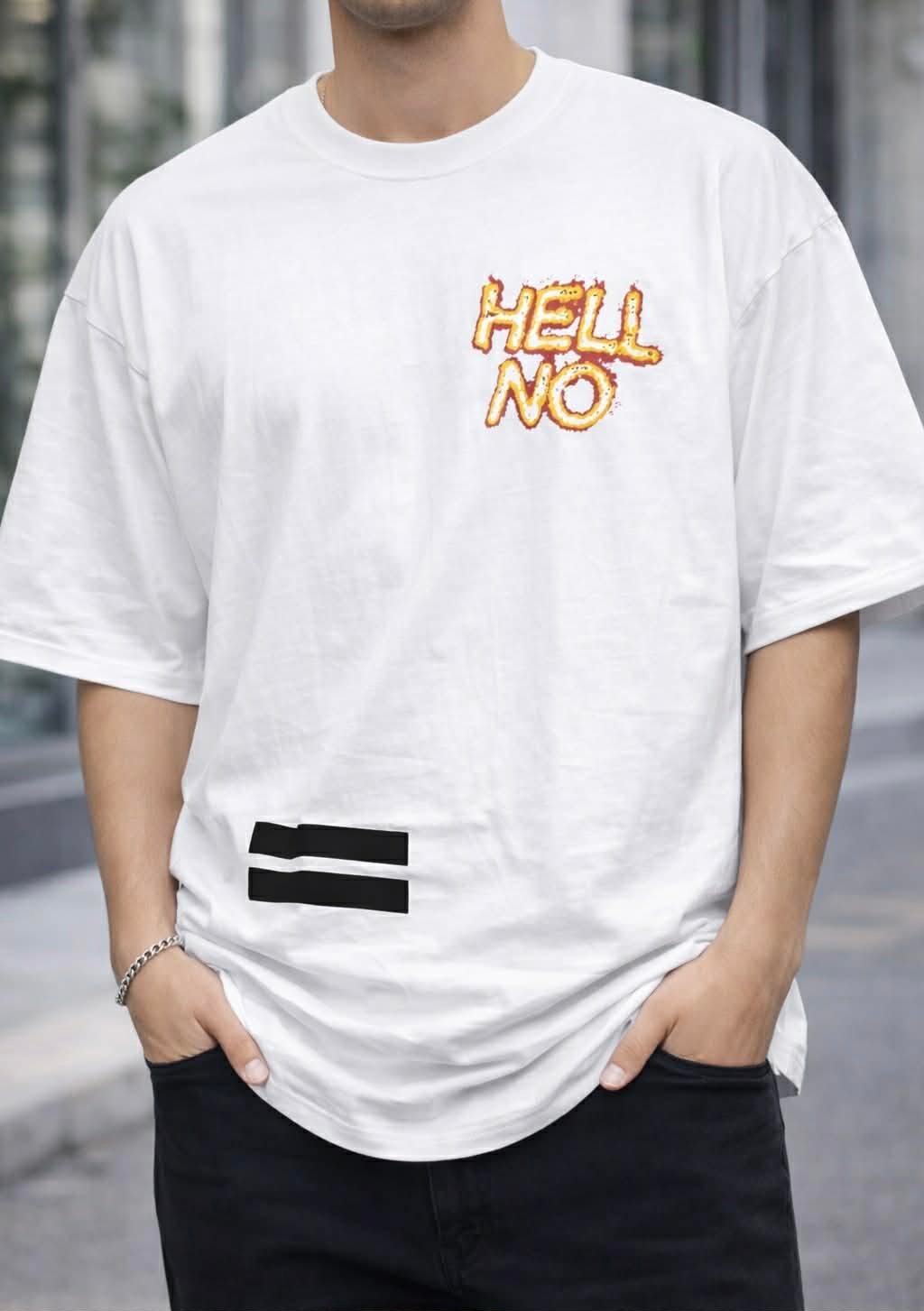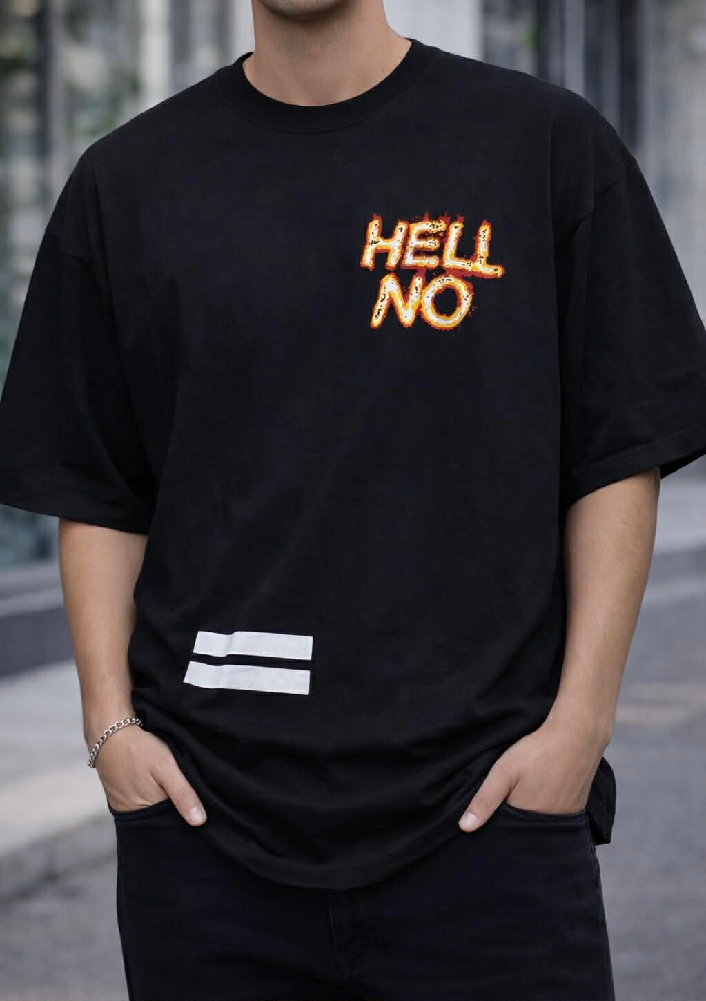 Bluzë oversize me dizajn minimalist dhe statement “Hell No”, e krijuar për një stil të guximshëm dhe pa kompromis. Detaji me shkrim në efekt “flame” i jep një prekje unike dhe edgy, ndërsa vijat grafike poshtë shtojnë karakter modern.