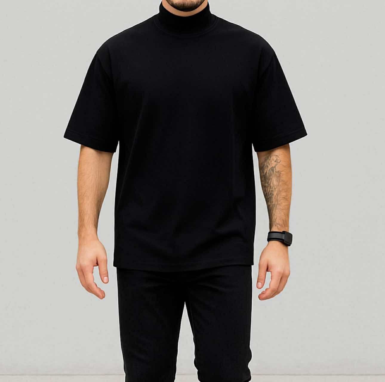 Kjo bluzë oversize me jakë rrollke vjen në ngjyrë të zezë klasike, duke i dhënë çdo kombinimi një pamje moderne dhe elegante. Pambuku premium ofron rehati maksimale, ndërsa prerja e lirshme siguron stil urban dhe të përshtatshëm për çdo ditë.