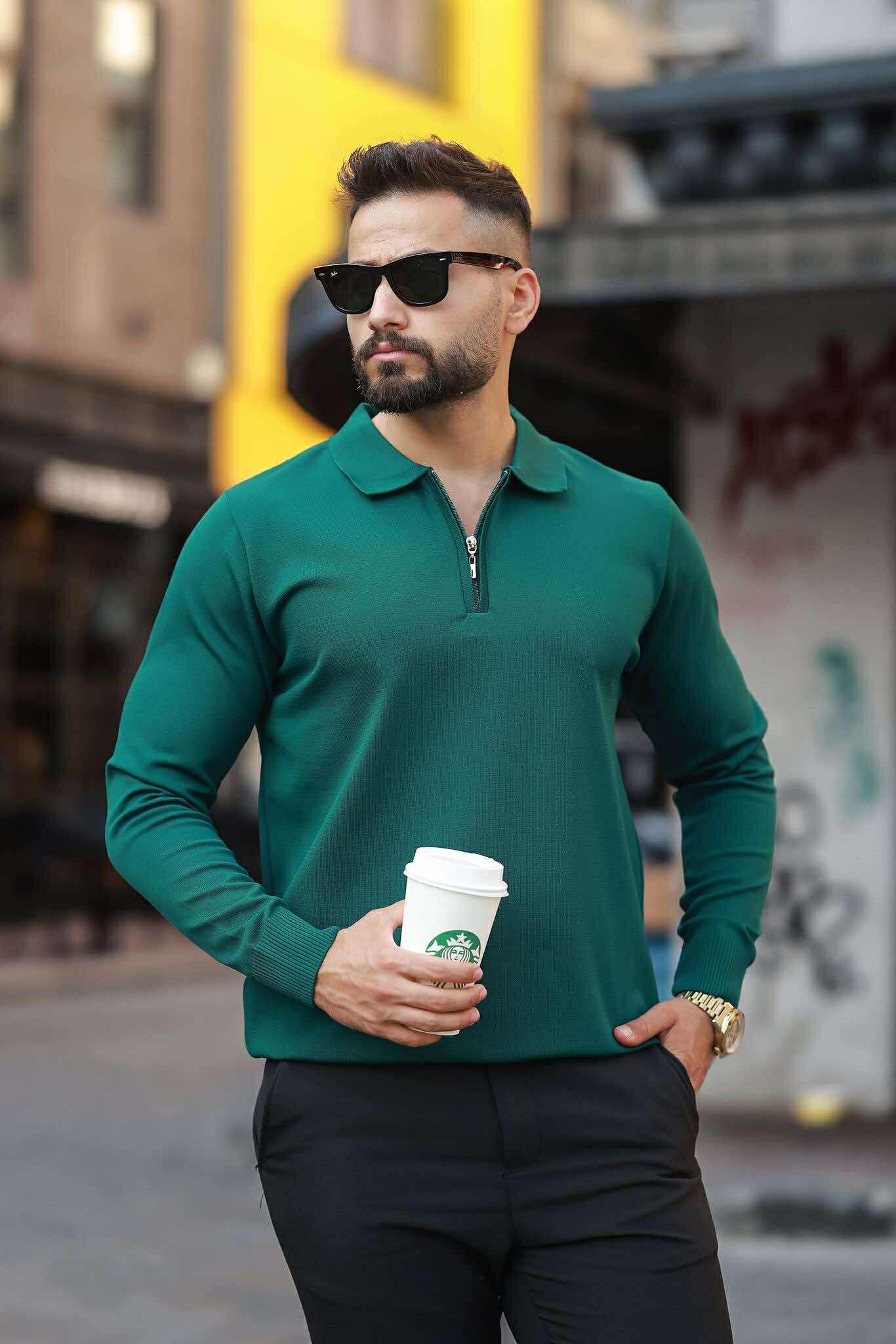 Bluzë Polo me Zip – Ngjyrë e Gjelbër