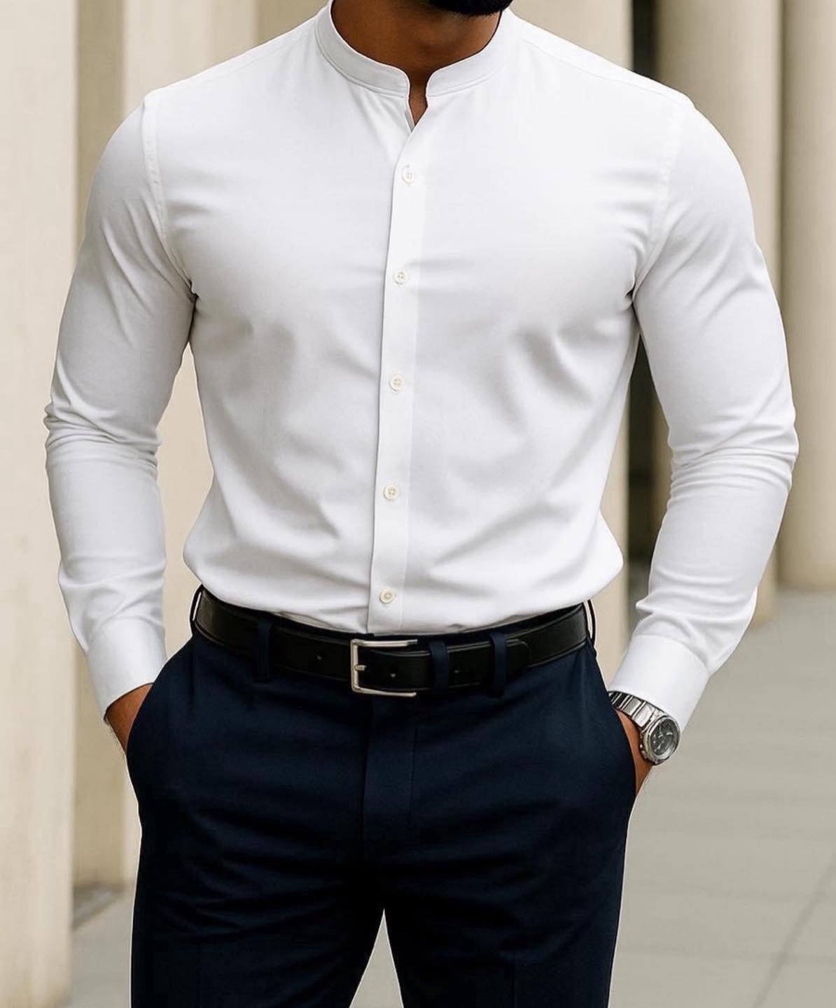 Kjo këmishë Premium Slim Fit me Jako Mandarin është krijuar për mashkullin që kërkon stil modern dhe të pastër.