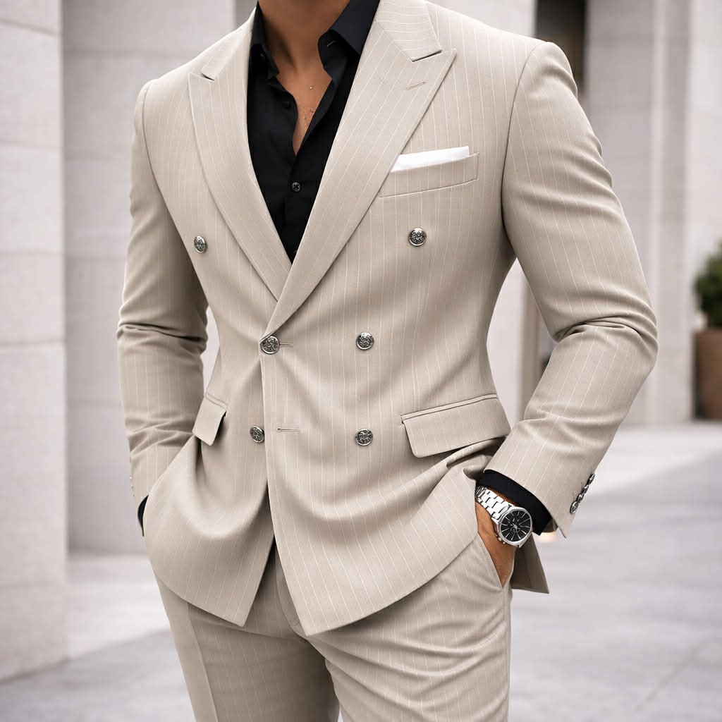 Kostum Beige Elegant me Vija – Double Breasted Slim Fit