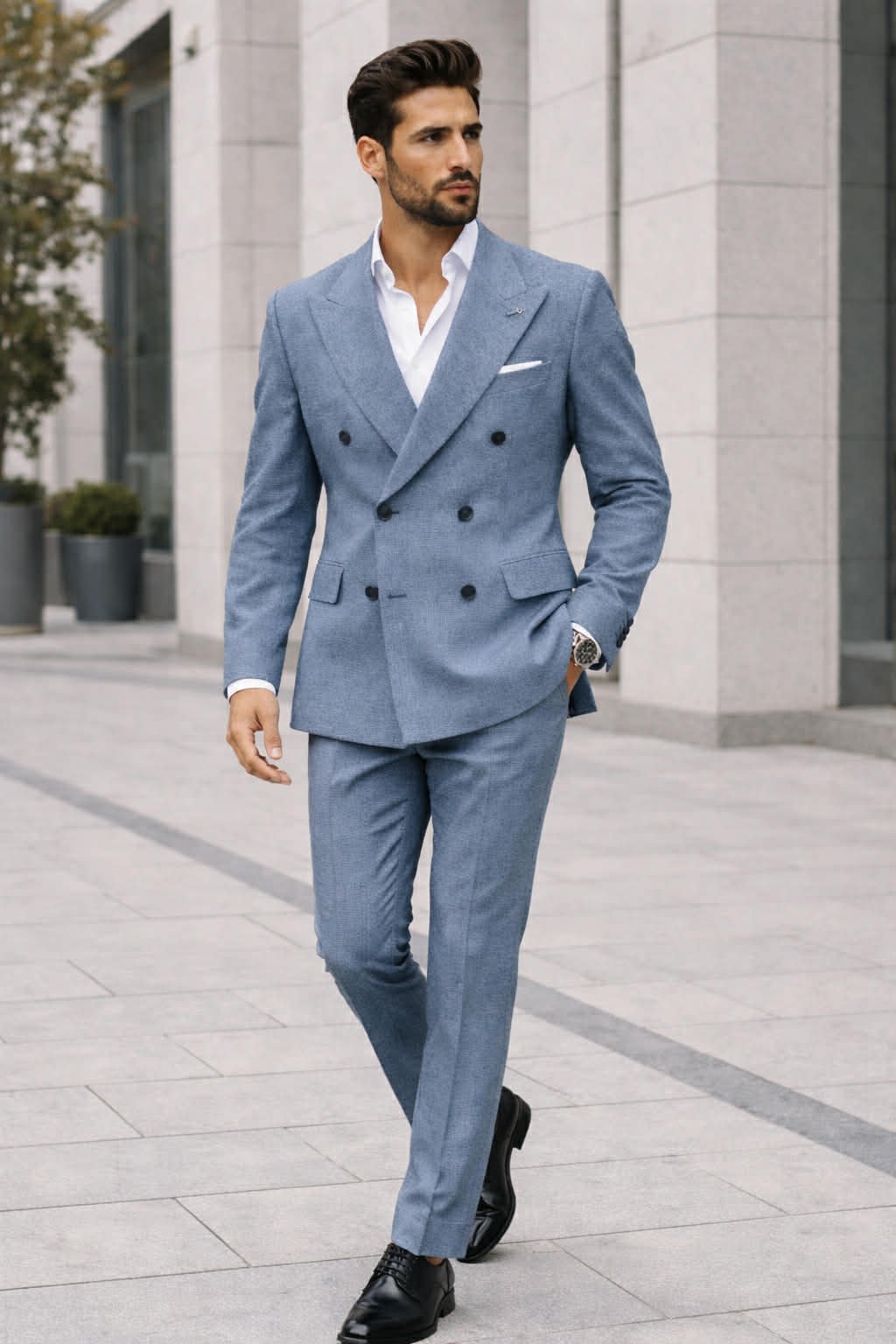 Ky kostum blu i çelët për meshkuj përfaqëson një qasje moderne ndaj elegancës klasike, duke ofruar një stil të freskët dhe të sofistikuar. I dizajnuar me prerje slim fit, ai përshtatet në mënyrë perfekte me trupin, duke krijuar një siluetë të rregullt dhe elegante. Xhaketa dopio-kopsa shton një element klasik premium, duke e bërë këtë kostum ideal për meshkujt që kërkojnë një paraqitje të dallueshme dhe të kuruar.