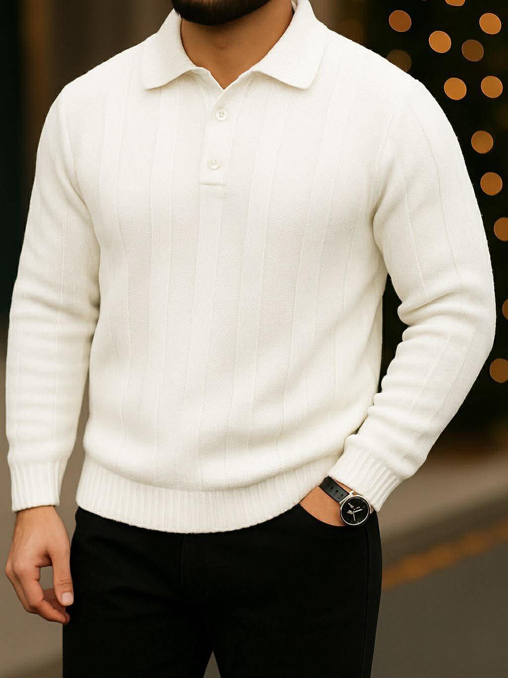 Polo-xhemperi Men’s Premium Ribbed Knit sjell elegancë të pastër dhe stil modern në çdo kombinim. I punuar me material të butë dhe premium, ky model vjen me strukturë ribbed verticale, që i jep një formë të rregullt trupit dhe një pamje shumë të pastër. Jakë klasike polo, tre kopsa të rafinuara dhe një prerje slim-fit e bëjnë ideal si për veshje të përditshme urbane, ashtu edhe për kombinime më elegante në mbrëmje.