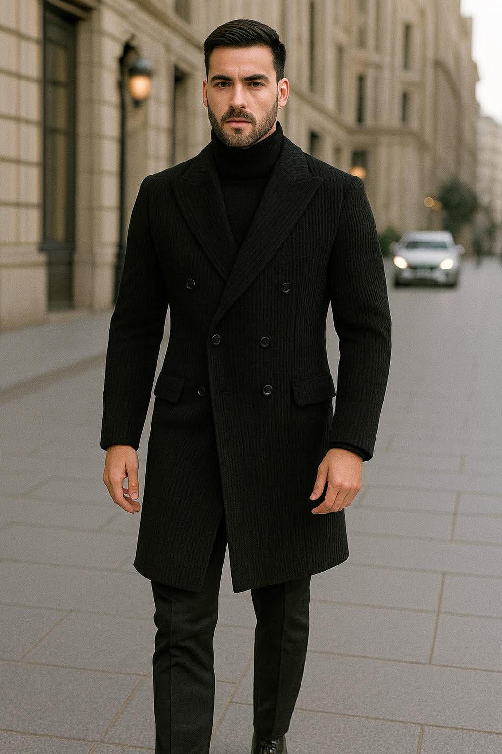 Ngjyra e zezë i jep palltos elegancë të përjetshme dhe e bën lehtësisht të kombinueshme me pulovra, golf, këmisha apo kostume. Ideale për punë, evente apo dalje urbane me stil.