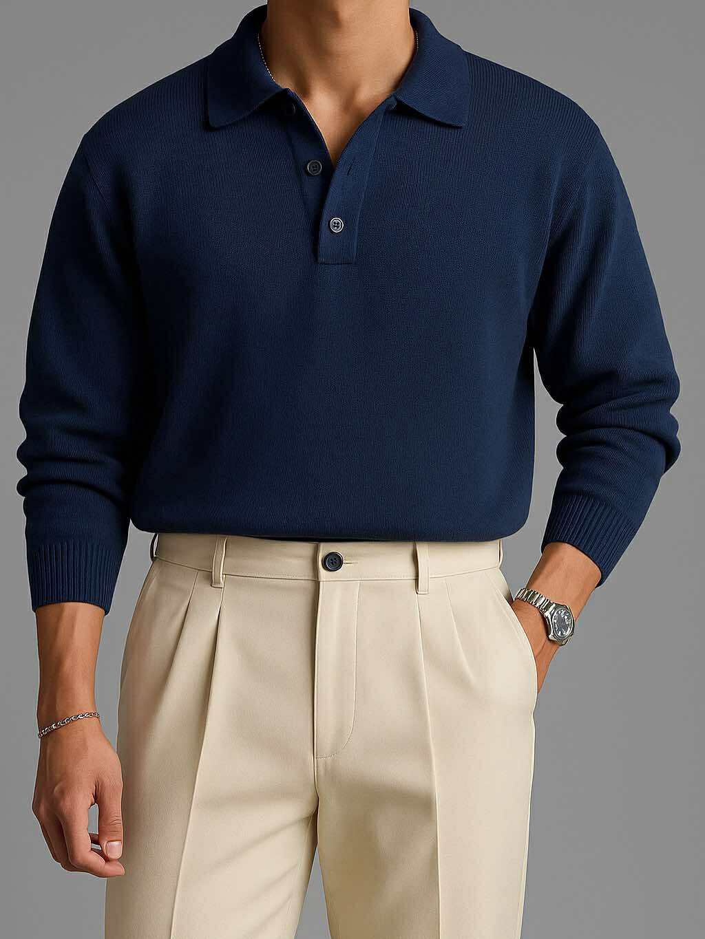 Kjo polo blu navy me tre pulla përfaqëson finesën dhe elegancën moderne. E punuar nga material premium me strukturë të butë dhe qëndrueshme, ofron një ndjesi komoditeti të lartë dhe një pamje të pastër që përshtatet për çdo rast.