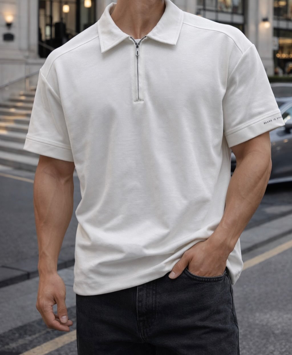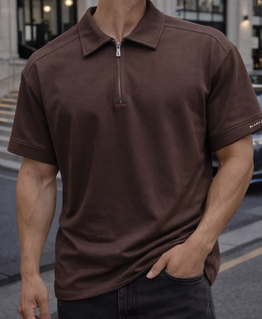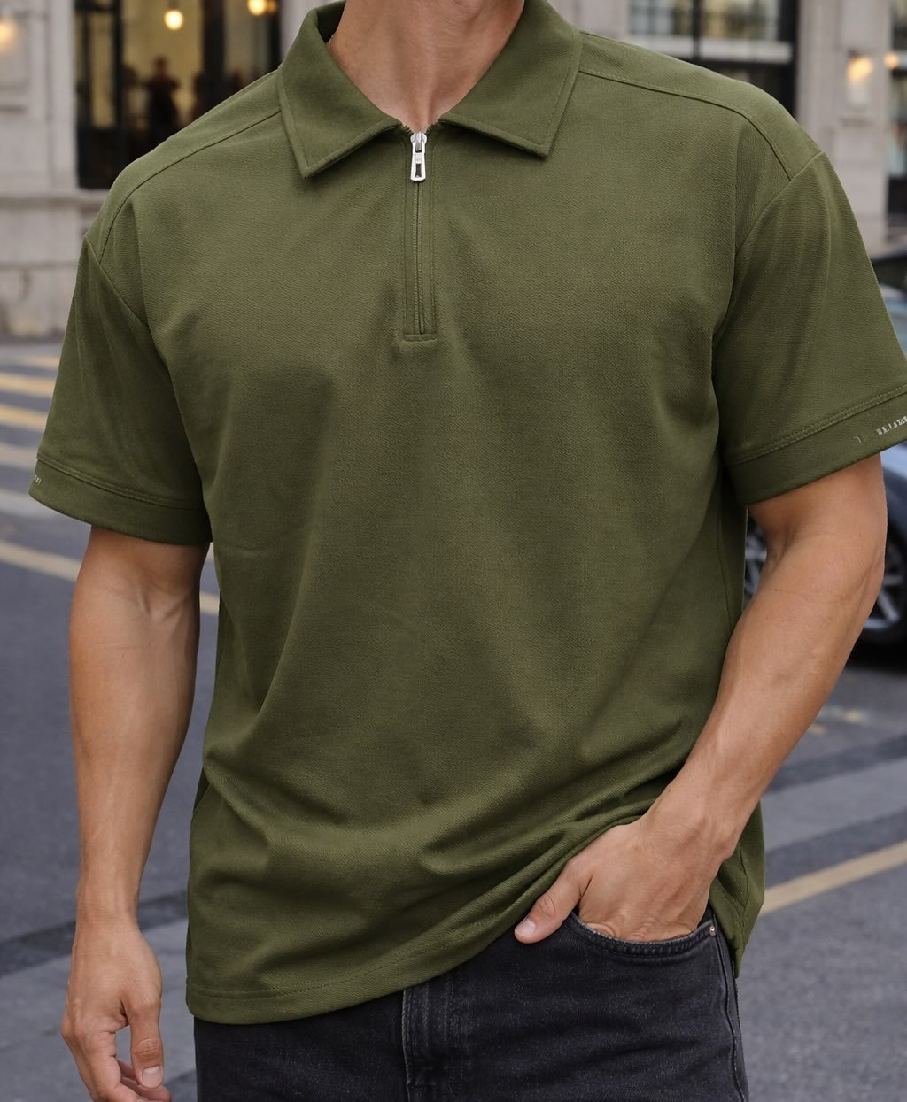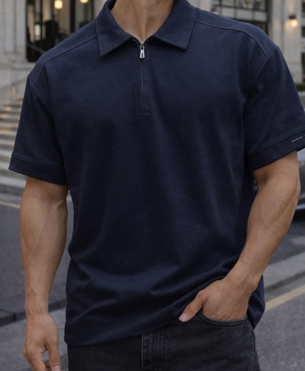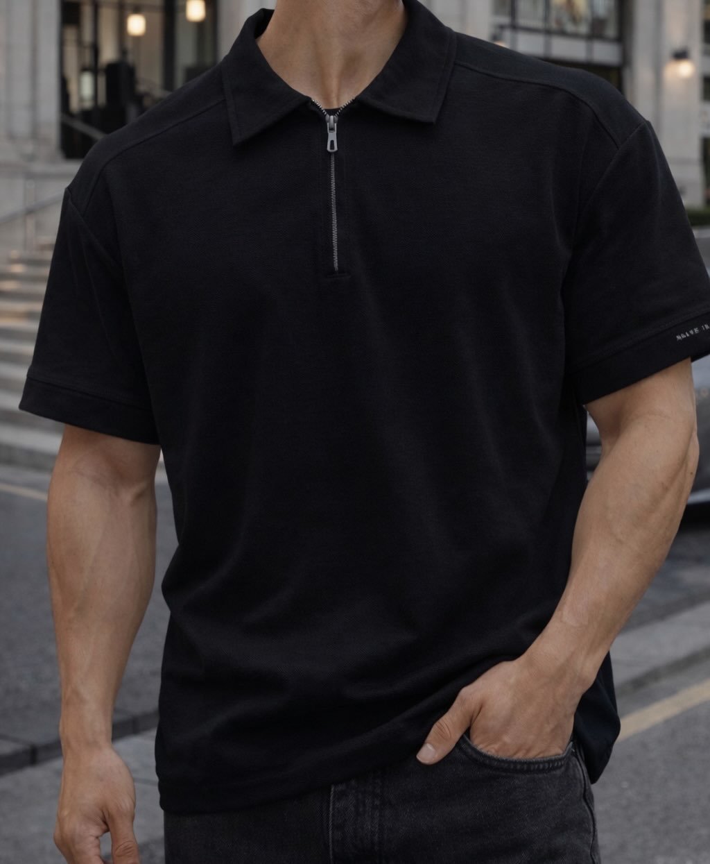Kjo bluzë polo për meshkuj kombinon elegancën moderne me rehati maksimale. E dizajnuar me jakë klasike dhe mbyllje me zinxhir në pjesën e përparme, ajo ofron një pamje të pastër dhe bashkëkohore që përshtatet lehtësisht si për veshje casual, ashtu edhe për kombinime më të rregullta.