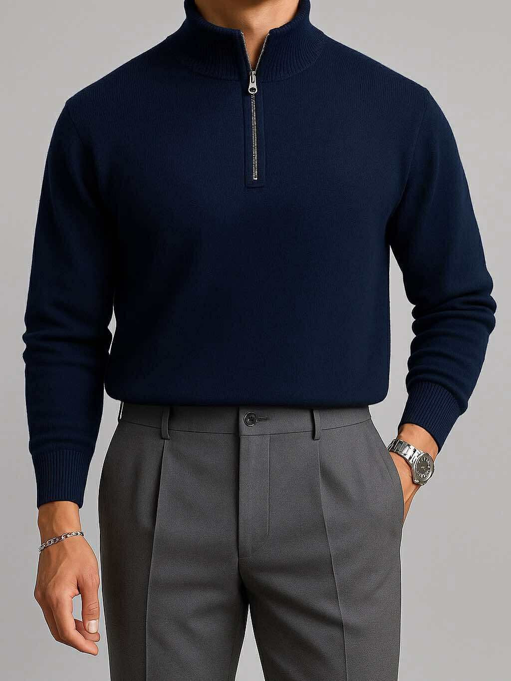 Ky polo zip blu navy përfaqëson finesën moderne me një prekje klasike. Me material premium dhe teksturë të butë, ofron një ndjesi komode dhe një pamje të pastër që përshtatet në çdo rast. Zinxhiri metalik i kromuar shton një detaj luksoz, duke e bërë këtë model ideal për kombinime urbane, profesionale apo të përditshme me stil.