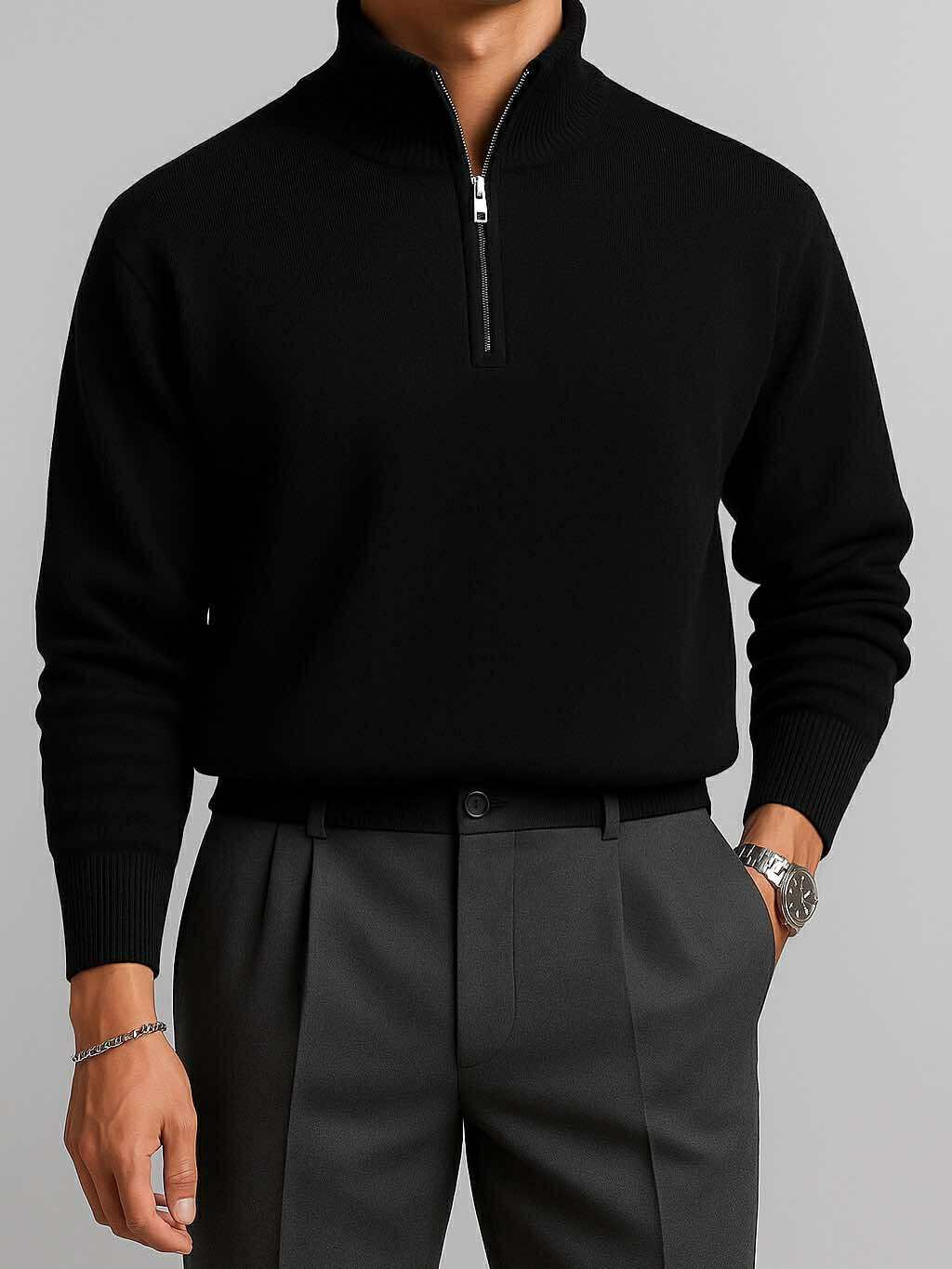 Polo Zip e Zezë Premium Oversize – Elegancë Urbane & Minimalizëm Modern