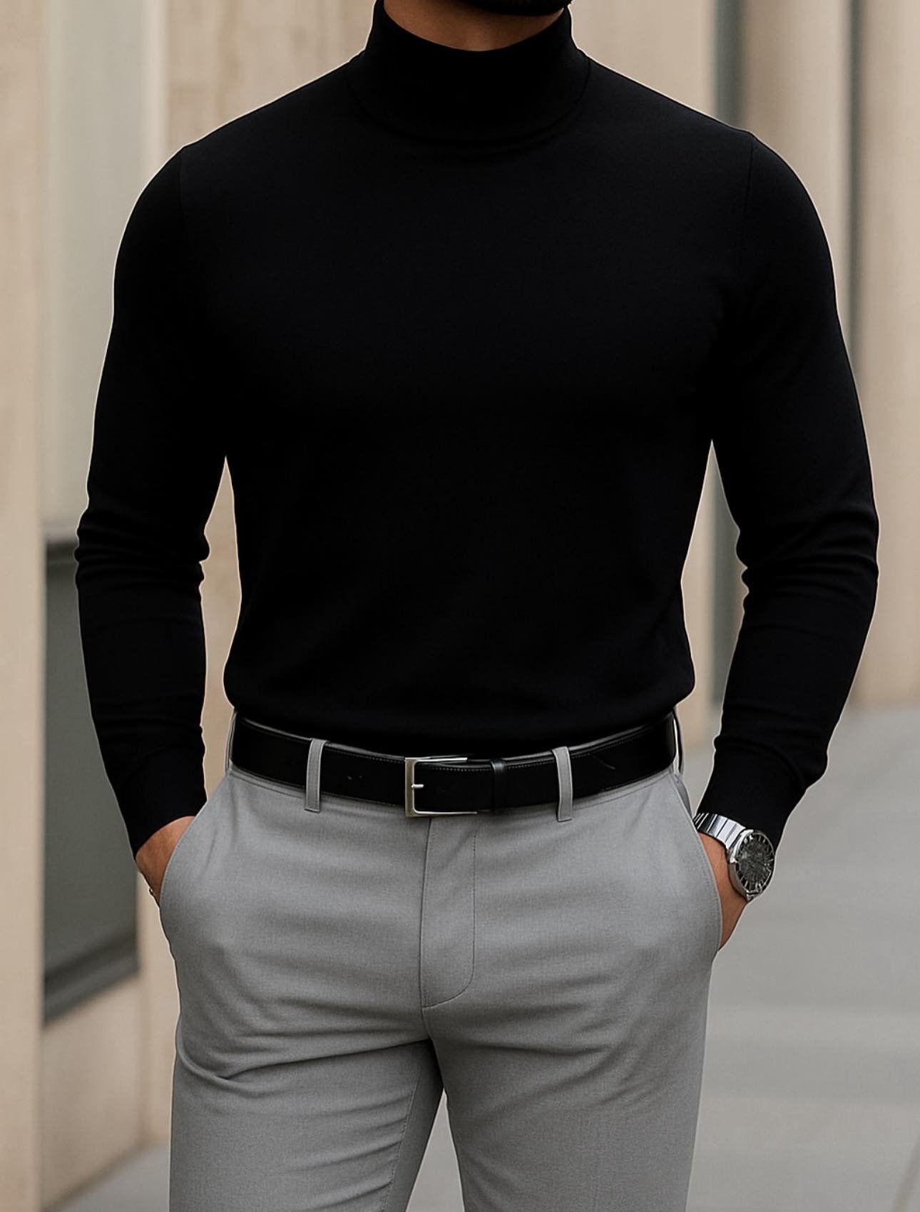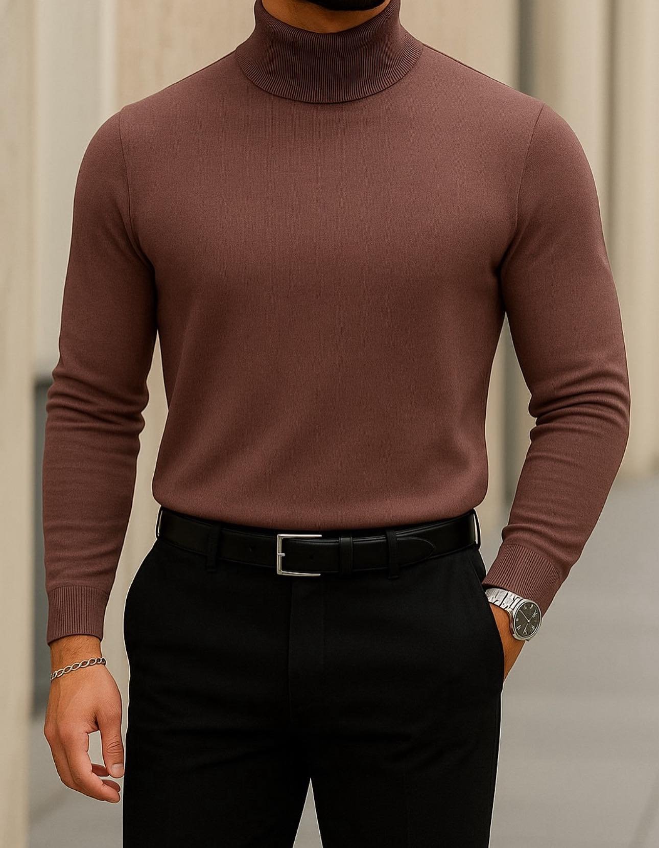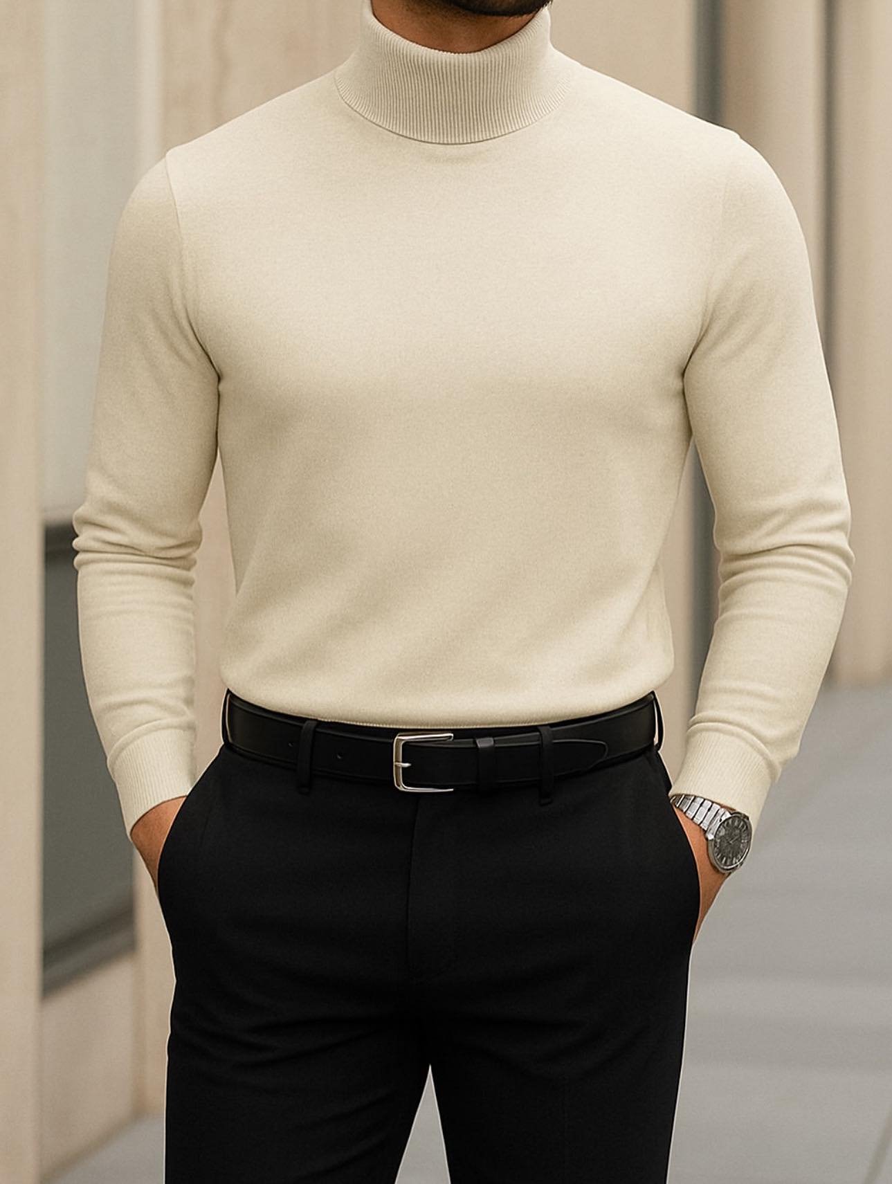 Kjo pulovër elegante me golf është dizajnuar për meshkuj që kërkojnë stil, pastërti dhe klas në çdo kombinim. E punuar nga material premium me teksturë të butë dhe elasticitet të përkryer, ajo ofron rehati të lartë dhe një pamje të rregullt, të ngushtë dhe moderne. Golfi i formuar bukur jep një prekje luksoze, ndërsa prerja Slim Fit thekson trupin në mënyrë fine dhe estetike.