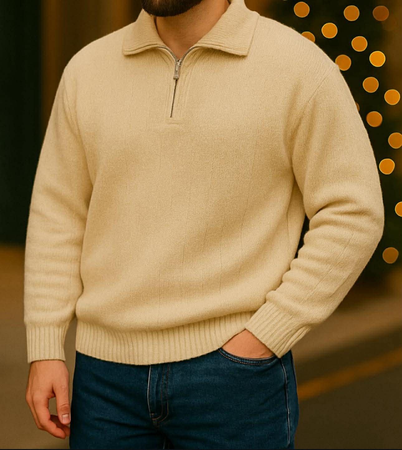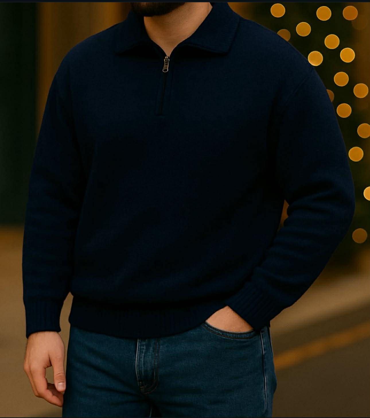 Kjo pulovër half-zip për meshkuj është kombinimi perfekt mes stilit modern dhe rehatisë së përditshme. E punuar nga material cilësor me strukturë të butë dhe të ngrohtë, ofron ndjesi komode dhe pamje elegante. Dizajni me jakë dhe zinxhir e bën të lehtë për kombinime casual apo smart-casual, ideale për veshje të përditshme, punë apo dalje urbane.