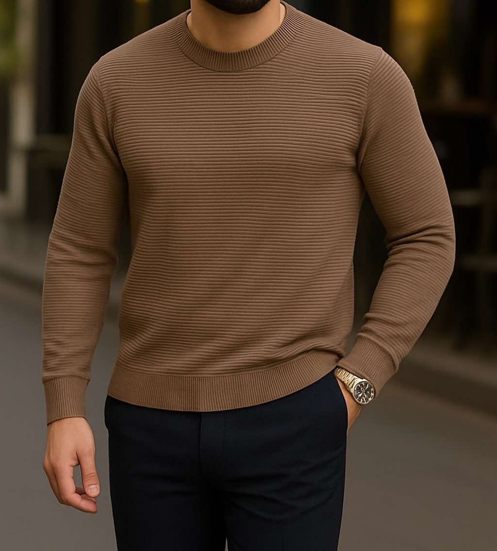 Pulovër Premium me Teksturë – Ngjyrë Kafe Mocha