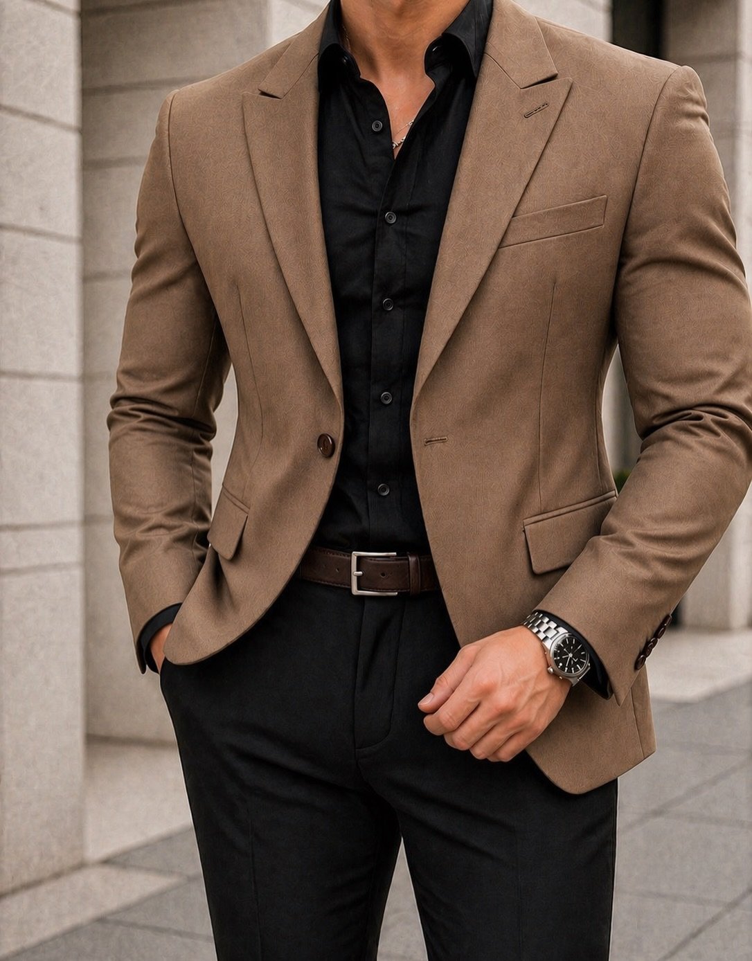 Sako Premium Mashkullor Camel – Elegancë Moderne Slim Fit