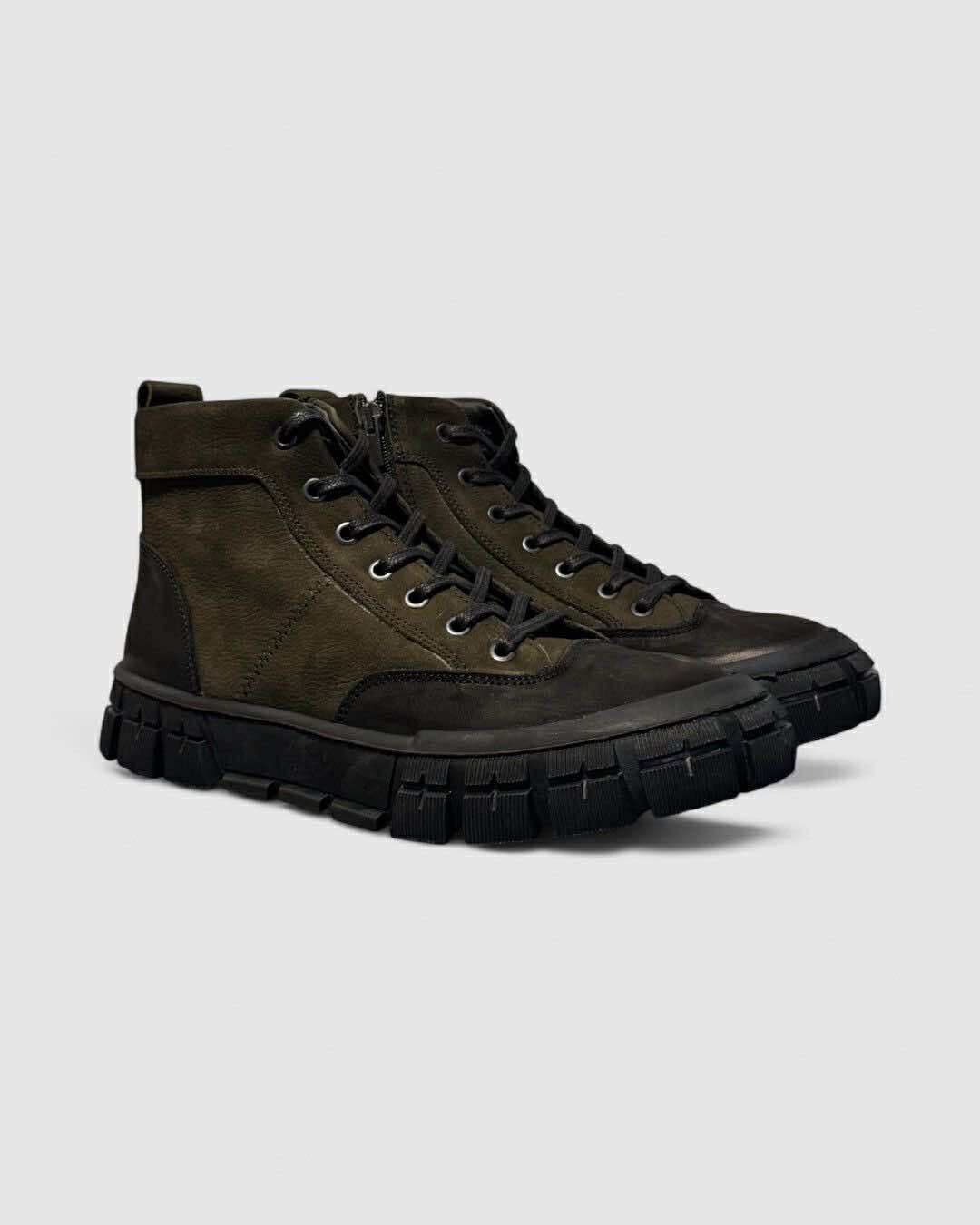 “Urban Tactical” janë kombinimi perfekt mes atleteve dhe çizmeve – ideale për djem që duan stil street / urban dhe komoditet maksimal. Me ngjyrë khaki dhe detaje në të zezë, këto high-top sneakers kanë shollë masive me profil të thellë për kapje më të mirë dhe pamje moderne.