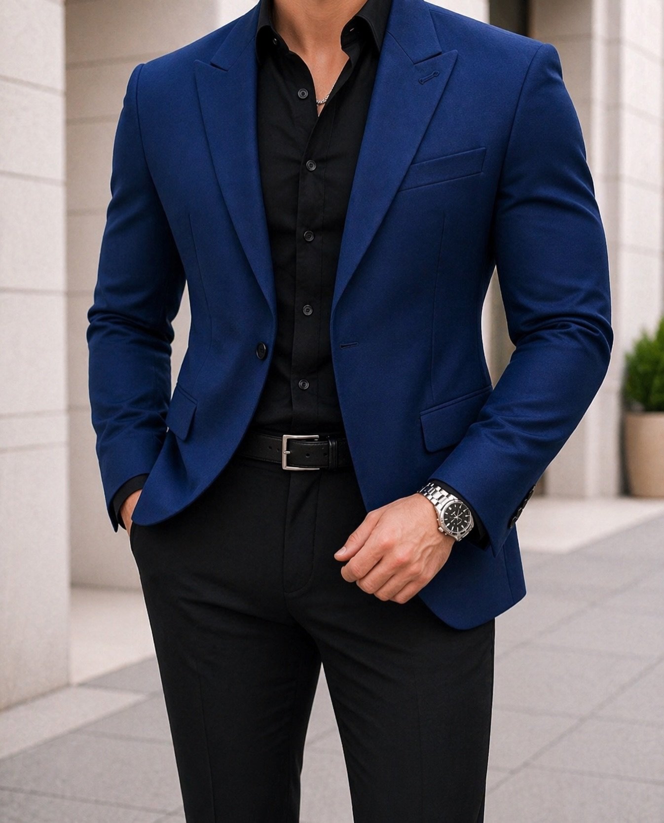 Kjo xhaketë elegante në ngjyrë blu navy është zgjedhja perfekte për një pamje moderne dhe të sofistikuar. E dizajnuar me prerje slim fit, ajo thekson linjat e trupit dhe ofron një stil të pastër e profesional. Kombinohet lehtësisht me një këmishë të zezë për një look minimalist dhe të rafinuar, ideal për evente formale, takime biznesi apo dalje në mbrëmje. Materiali cilësor siguron rehati gjatë gjithë ditës, ndërsa detajet si xhepat klasikë dhe prerja precize i japin një përfundim premium.
