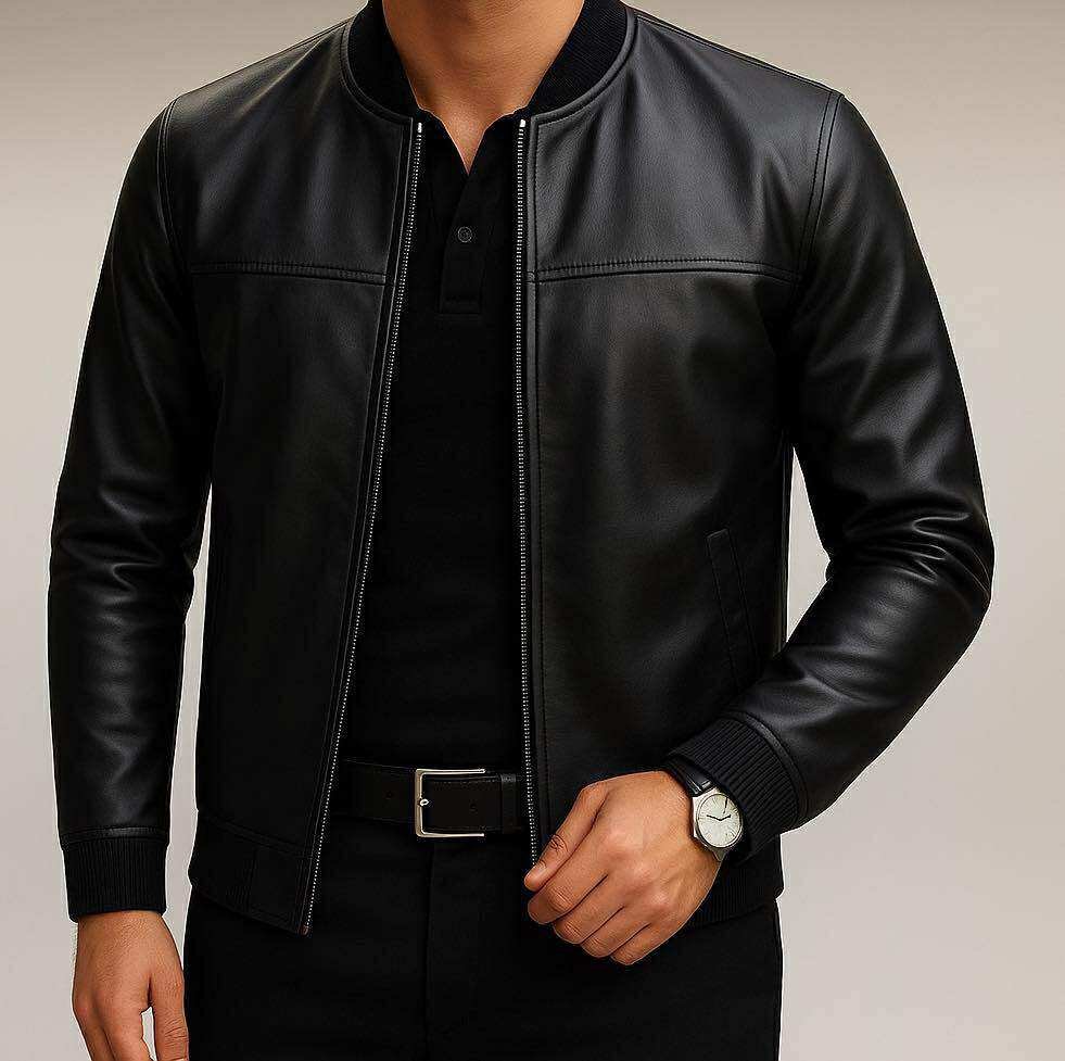 Xhaketë klasike bomber prej lëkure Artificiale në ngjyrë të zezë me dizajn minimalist. E punuar nga material lëkure cilësore, kjo xhaketë ofron elegancë, qëndrueshmëri dhe stil urban. Detajet me zinxhir, preria e rregullt dhe fundi elastik te mëngët dhe beli garantojnë përshtatje perfekte dhe rehati. Një pjesë ikonike që kombinohet lehtësisht me xhinse, pantallona apo veshje më formale për një pamje moderne dhe të sofistikuar.