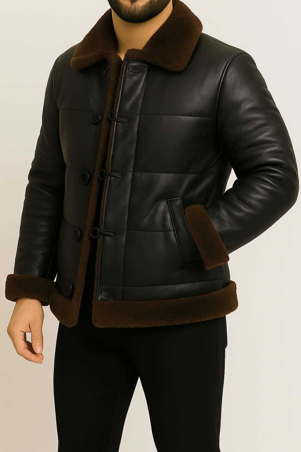 Xhaketë Lëkure me Brendësi Pelushi Kafe – Stil Klasik & Luksoz Dimëror
