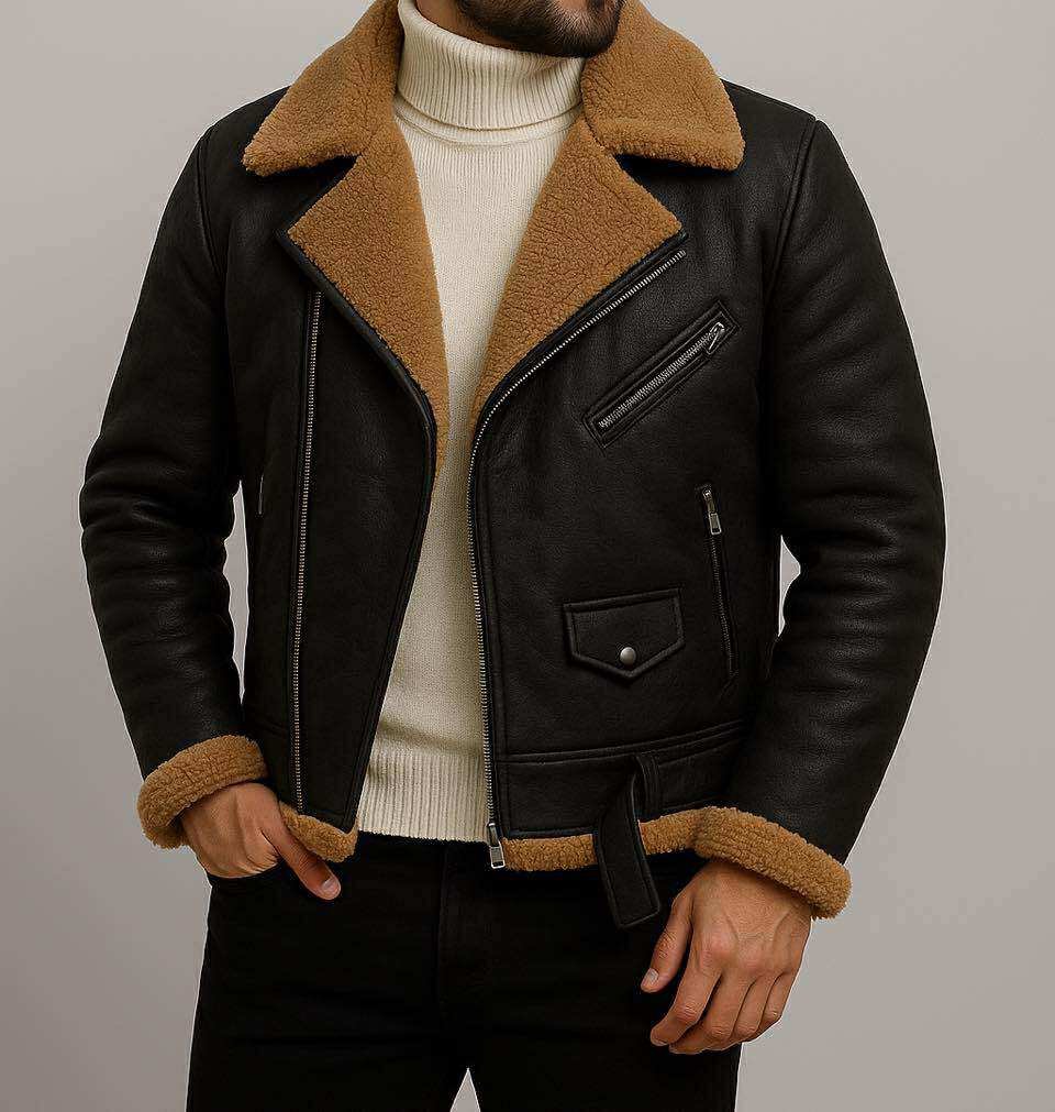 Kjo xhaketë me efekte lëkure  është një kombinim perfekt mes luksit klasik dhe stilit urban modern. Me material të jashtëm prej lëkure mat dhe pelush kafe të trashë në brendësi, ofron ngrohtësi dhe elegancë gjatë muajve të ftohtë. Prerja është regular fit, ndërsa detajet si jakë e gjerë me pelush, zinxhirët anësorë dhe rripi në bel i japin pamje të sofistikuar dhe mashkullore. Ideale për çdo kombinim dimëror — nga pamjet casual me xhinse e golf, deri tek daljet më elegante.