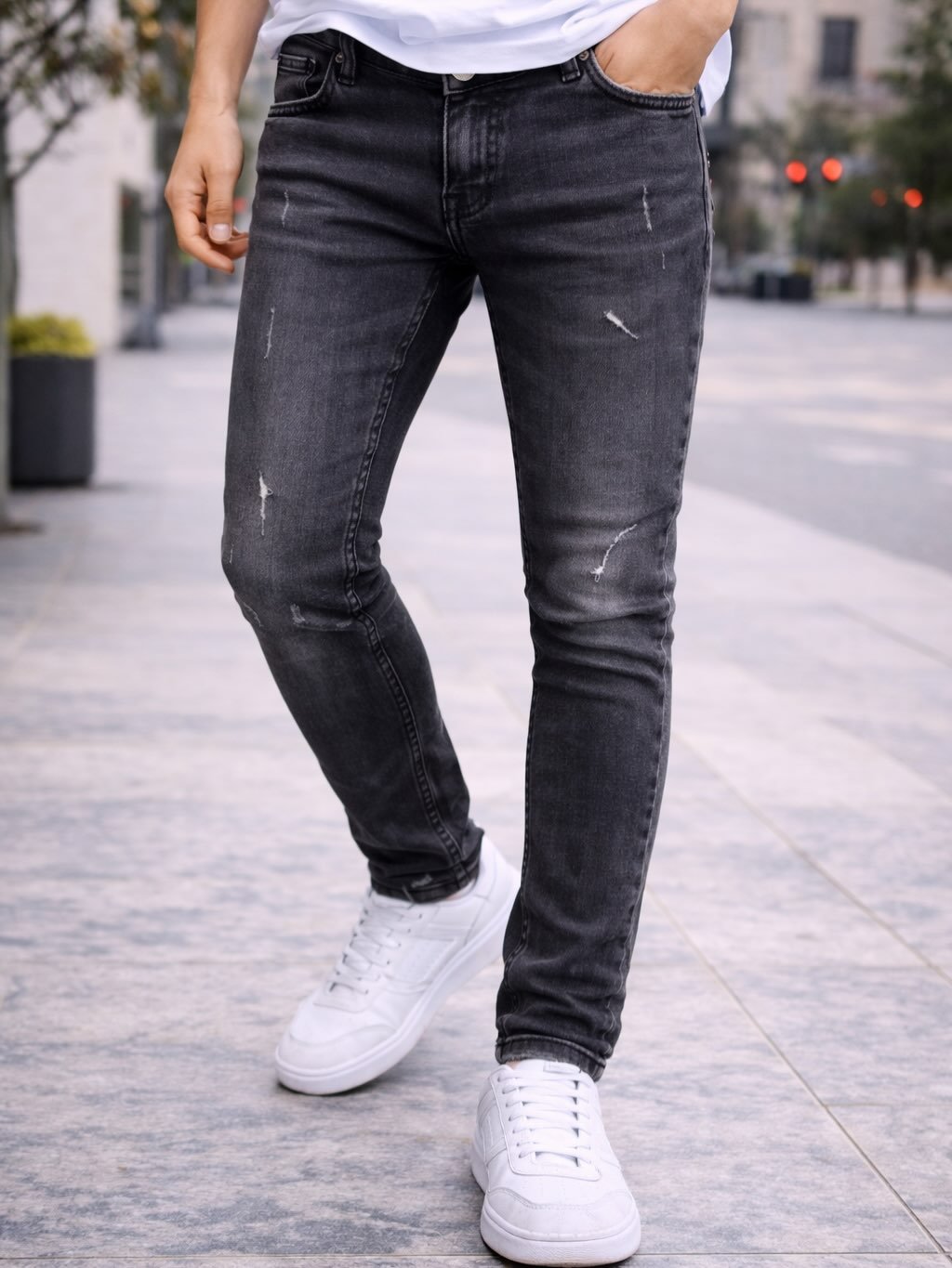 Ngjyra gri e errët me efekt të lehtë të konsumuar dhe detaje diskrete i japin një pamje trendy dhe urbane. Materiali cilësor dhe elastik siguron lëvizshmëri të lirë dhe qëndrueshmëri të lartë, duke i bërë ideale për përdorim të përditshëm.
