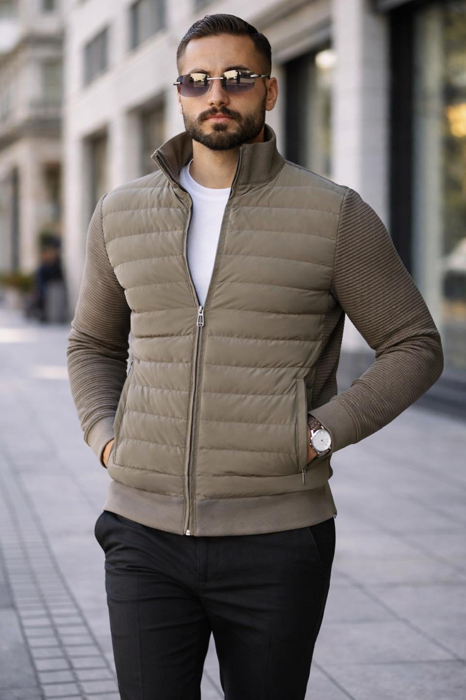 Xhupi Urban Hybrid është kombinimi perfekt mes stilit modern dhe rehatisë maksimale. I dizajnuar për mashkullin që kërkon elegancë sportive në përditshmëri, ky model përmban pjesën e përparme të mbushur me material puffer për ngrohtësi optimale, ndërsa mëngët me teksturë elastike ofrojnë fleksibilitet dhe përshtatje perfekte në trup.