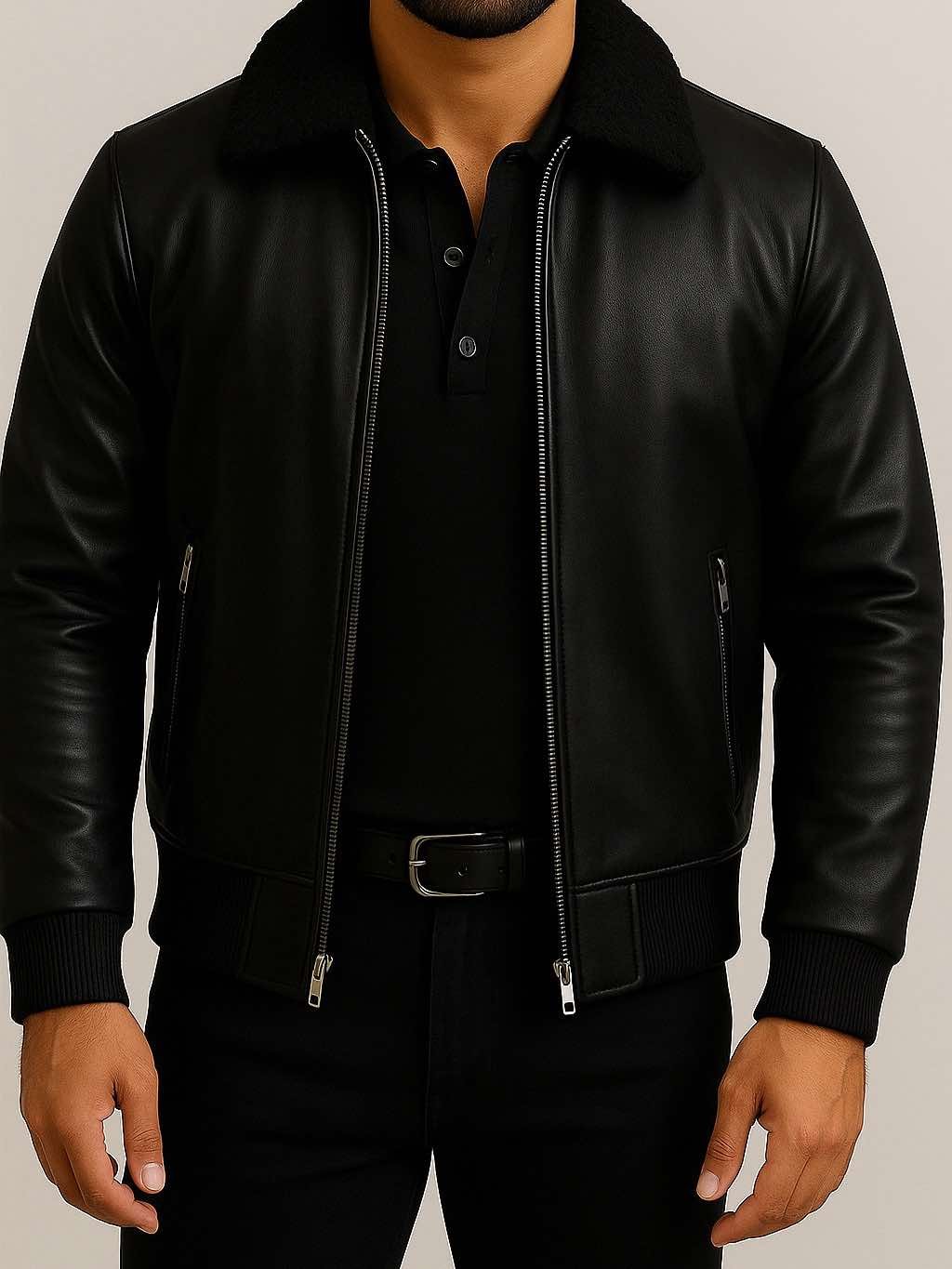 Ky xhup bomber prej lëkure premium është thelbi i stilit “urban-luxury”. Me një dizajn të pastër, jakë pelushi të zezë dhe përfundime metalike, ofron një pamje të fuqishme dhe elegante për sezonin e ftohtë.
